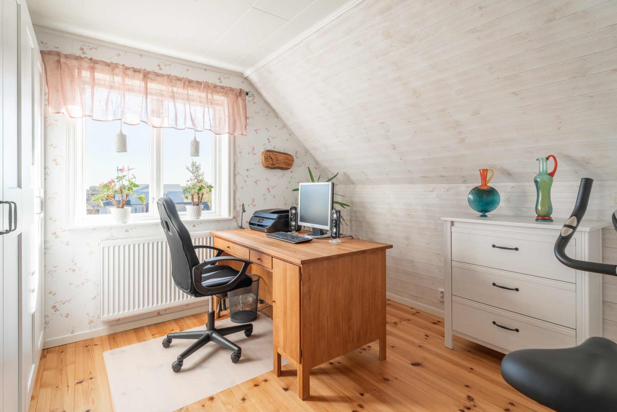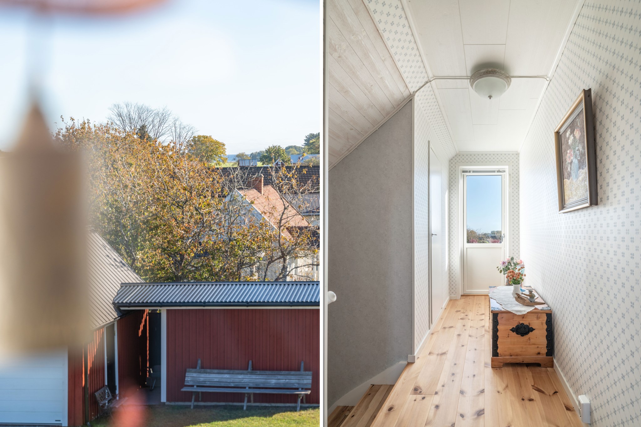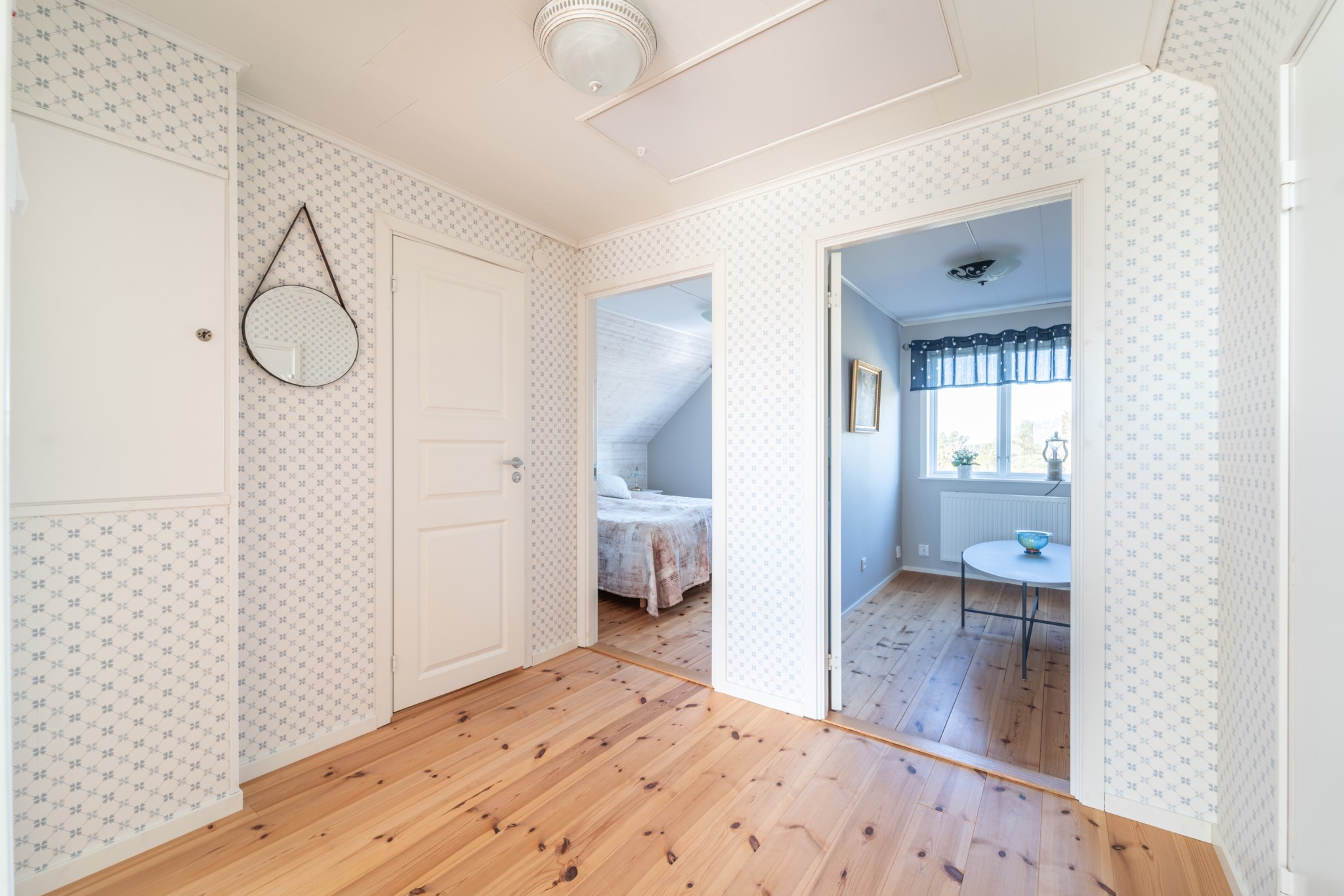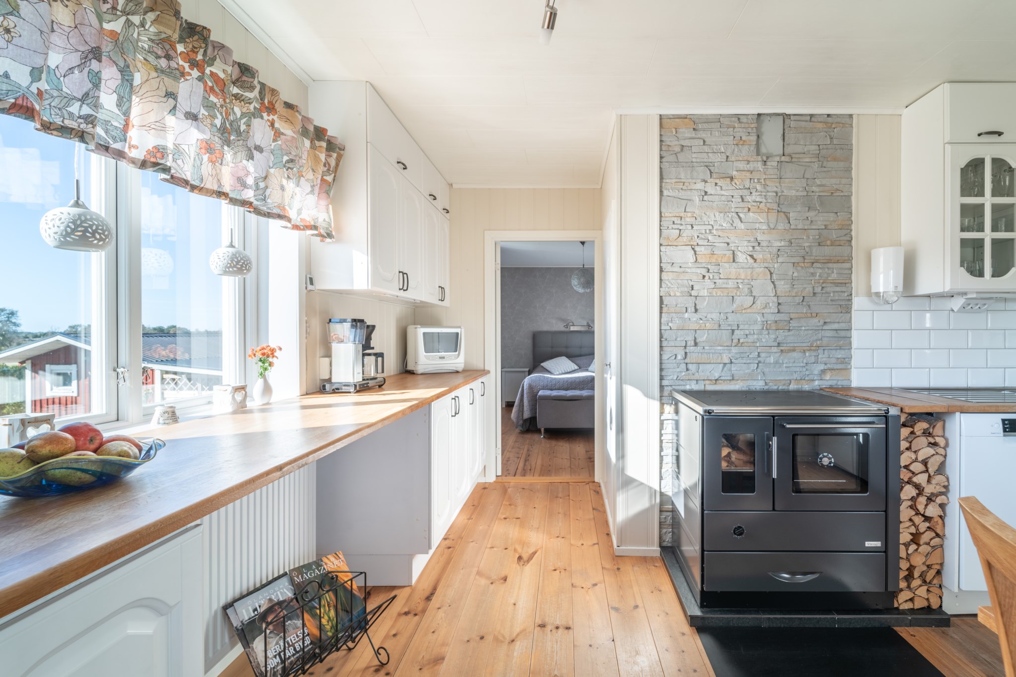 Bostaden fördelas över tre plan. I källaren finns allt det praktiska: tvättstuga, matkällare, maskinrum/ hobbyrum och gott om förvaring. På entréplanet möts du av generösa sällskapsytor, ett renoverat kök med vedspis, vardagsrum med utgång till uterum och altan i härligt västerläge – perfekt för eftermiddagskaffe och kvällssol. Här finns även ett sovrum med klädkammare samt både badrum och duschrum. På övervåningen väntar tre trivsamma sovrum, ytterligare klädkammare, toalett och en balkong med havsutsikt – en underbar plats att börja dagen på.