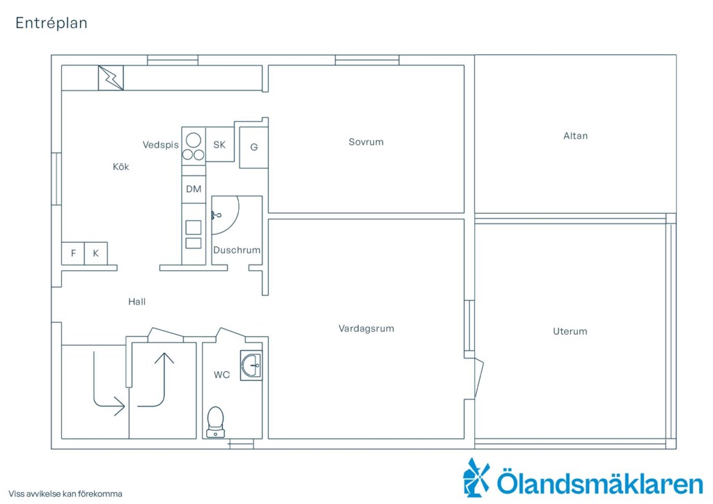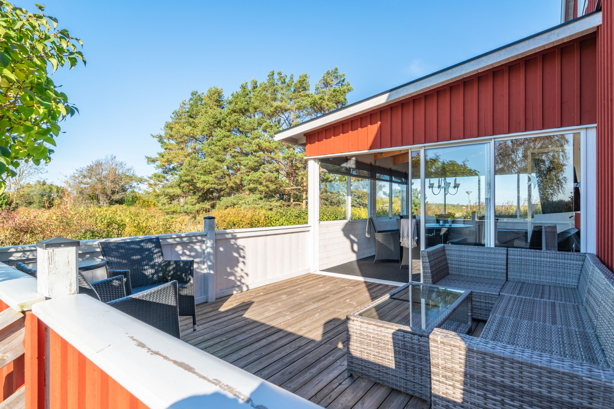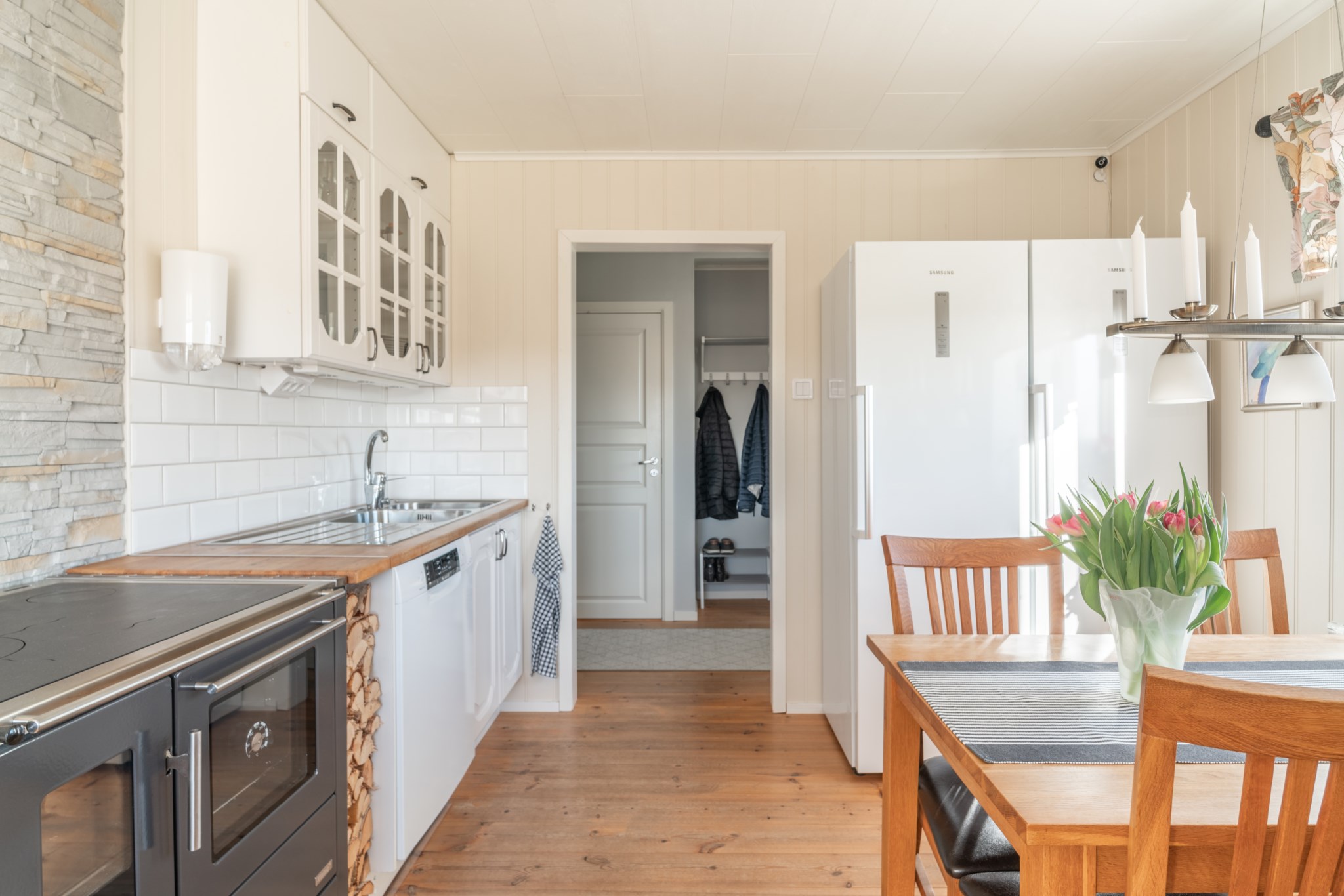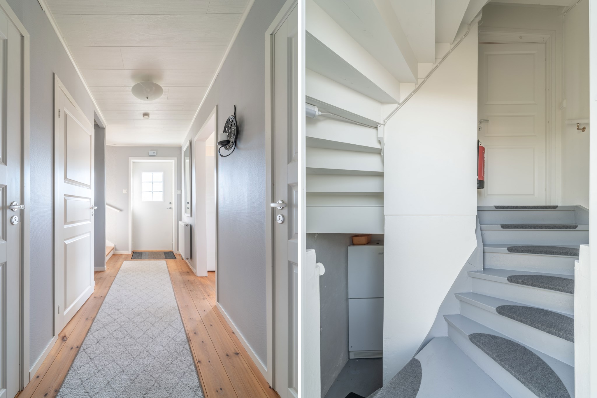 Bostaden fördelas över tre plan. I källaren finns allt det praktiska: tvättstuga, matkällare, maskinrum/ hobbyrum och gott om förvaring. På entréplanet möts du av generösa sällskapsytor, ett renoverat kök med vedspis, vardagsrum med utgång till uterum och altan i härligt västerläge – perfekt för eftermiddagskaffe och kvällssol. Här finns även ett sovrum med klädkammare samt både badrum och duschrum. På övervåningen väntar tre trivsamma sovrum, ytterligare klädkammare, toalett och en balkong med havsutsikt – en underbar plats att börja dagen på.