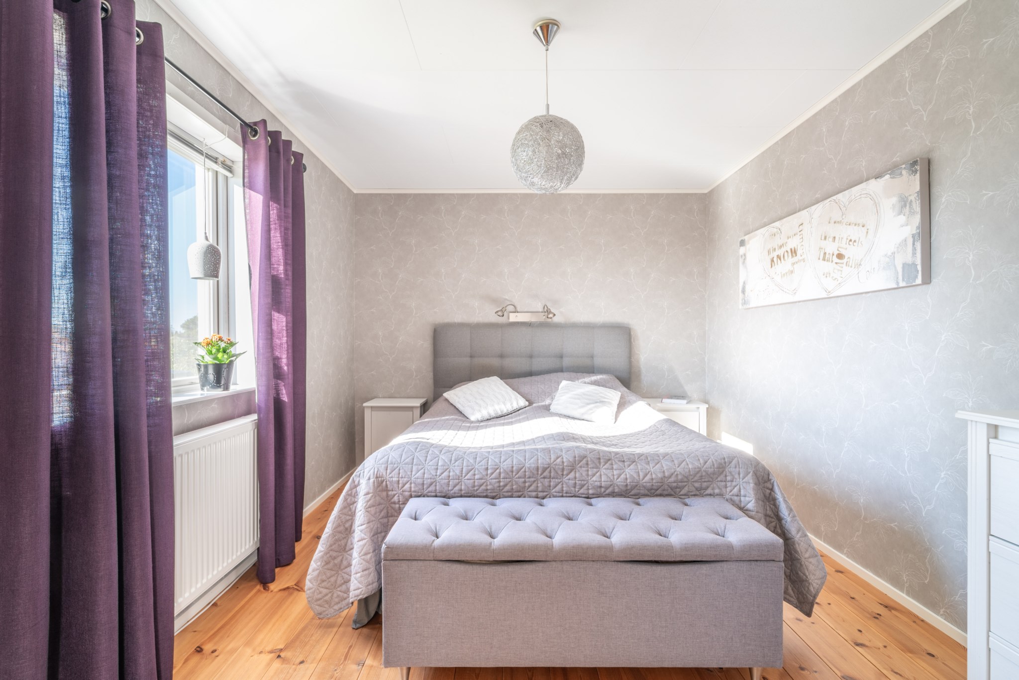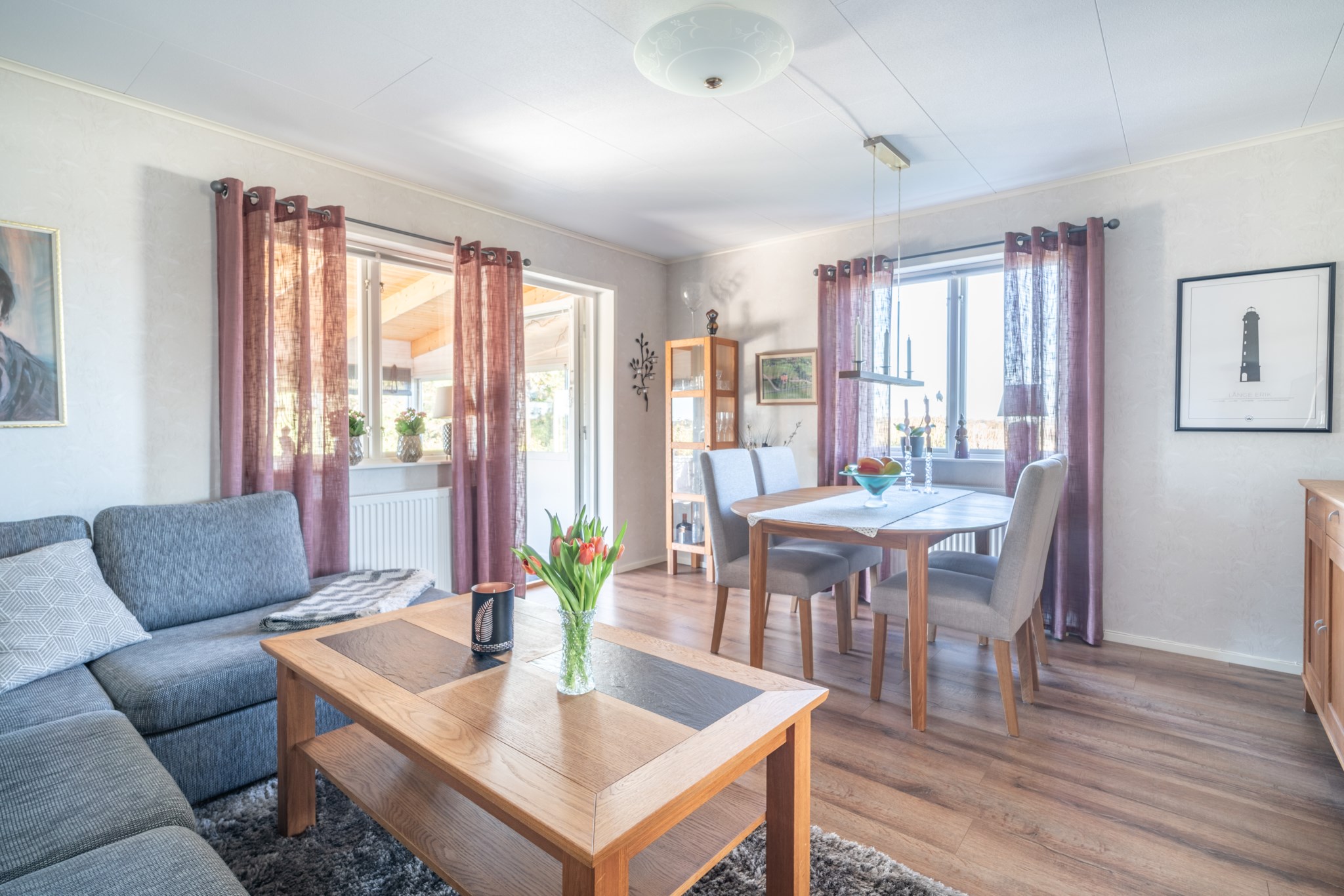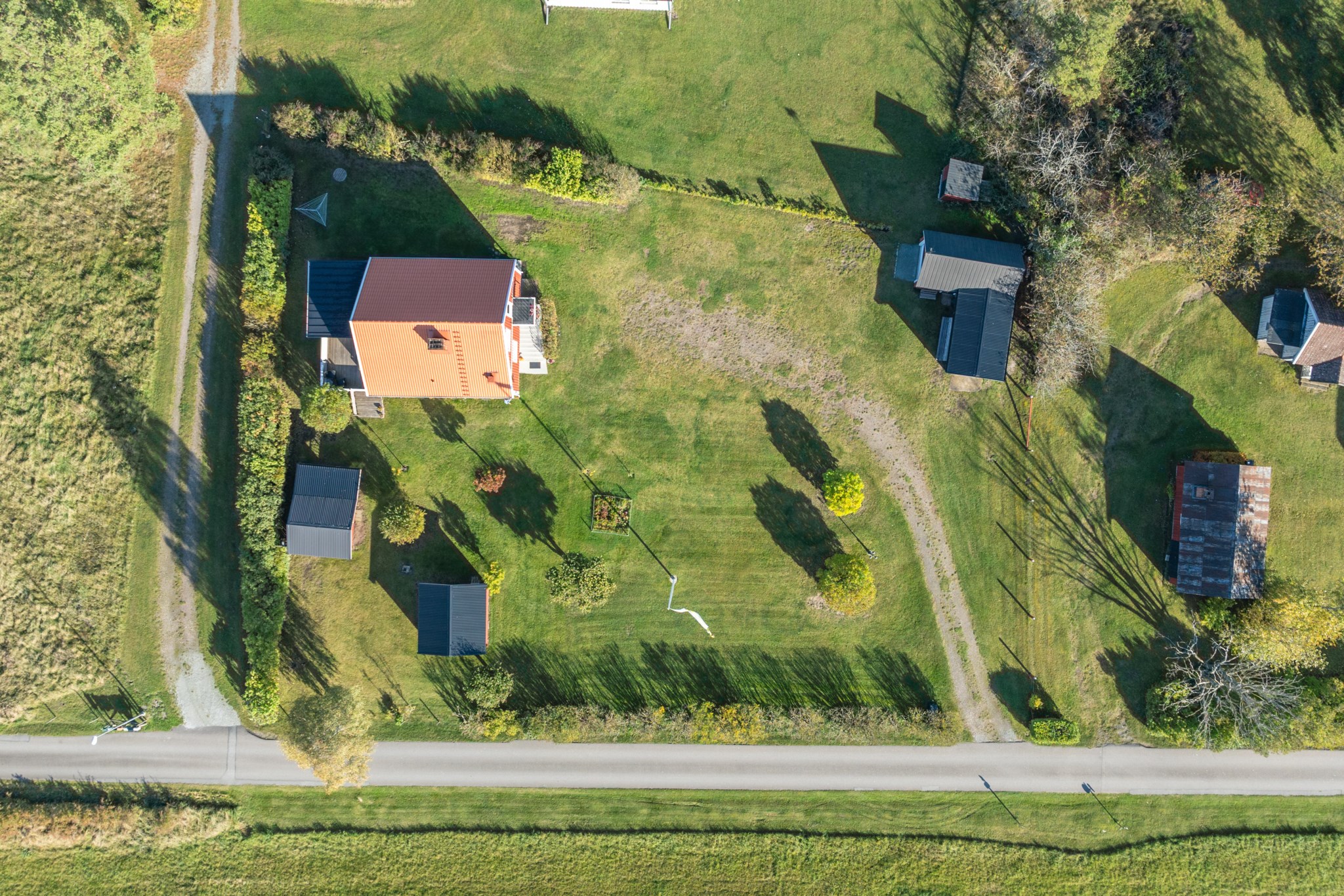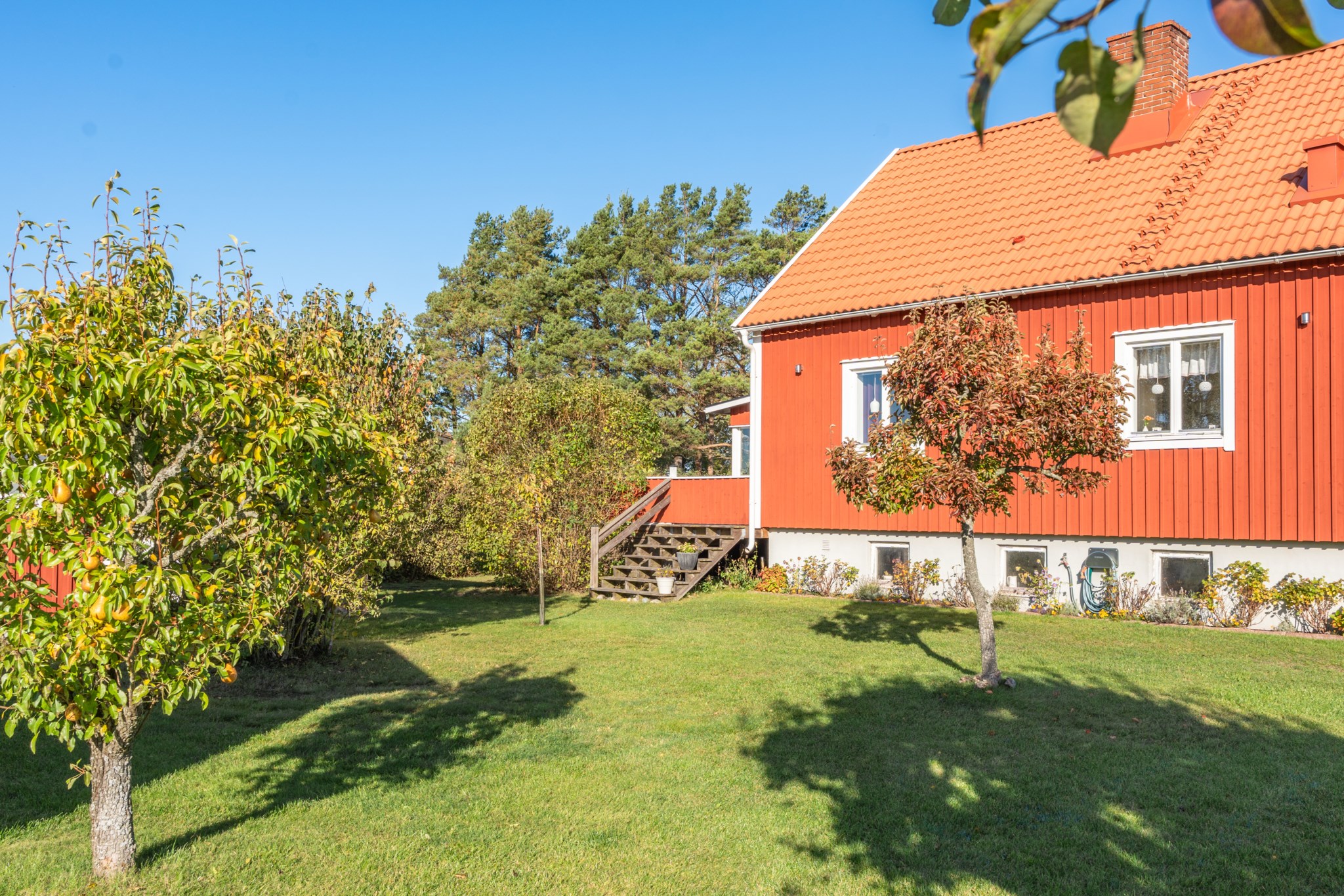 Fastigheten är otroligt väl omhändertagen och utstrålar omtanke redan vid första intrycket. Den välskötta tomten om ca 2 000 kvm ramar in huset på ett harmoniskt sätt, och här finns både gräsmattor, planteringar och plats för odling eller framtida utveckling. Boningshuset om 134 kvm, tillsammans med garage med elport och förråd, utgör en genomtänkt helhet.
