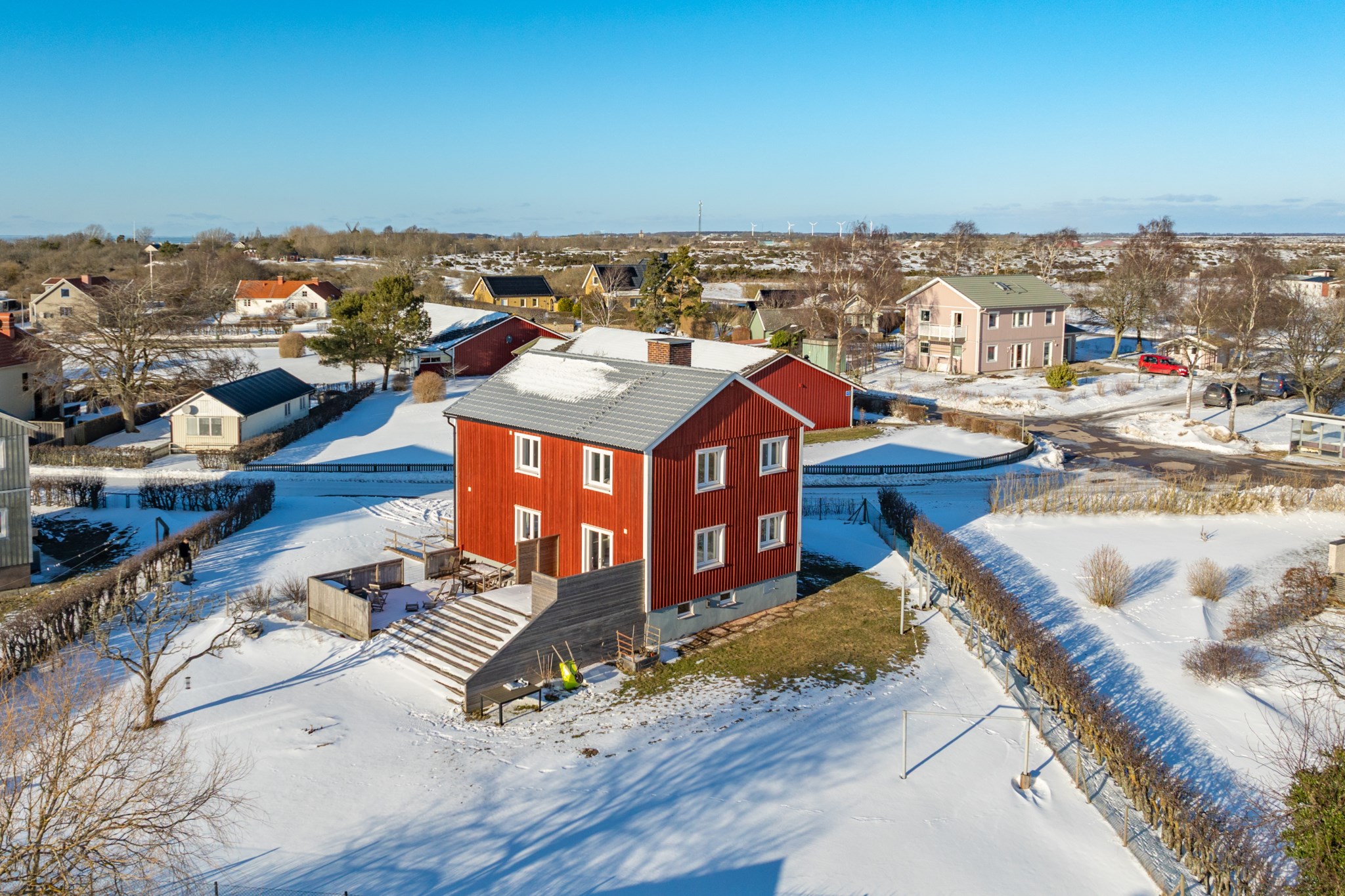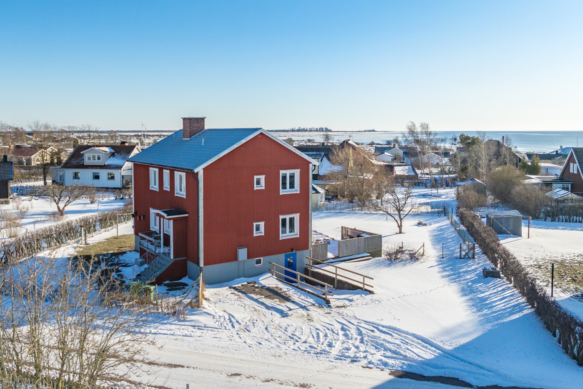 Huset i 2-plan med källare ligger högt beläget med vacker utsikt över Kalmarsund. Villan har renoverats och rustats upp till en inflyttningsklar bostad med bergvärme och eldningsmöjligheter.