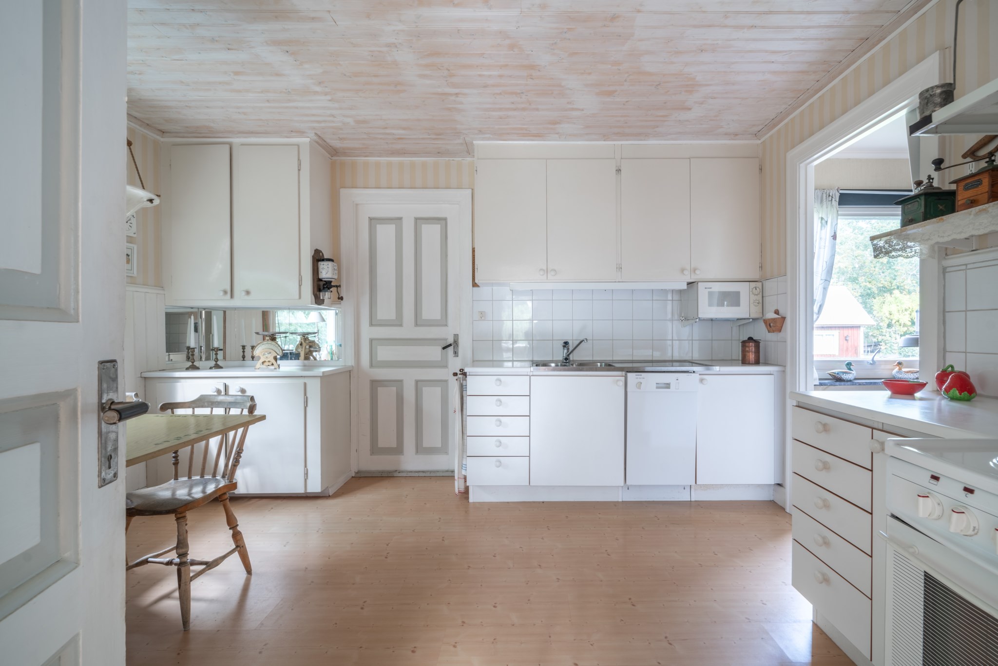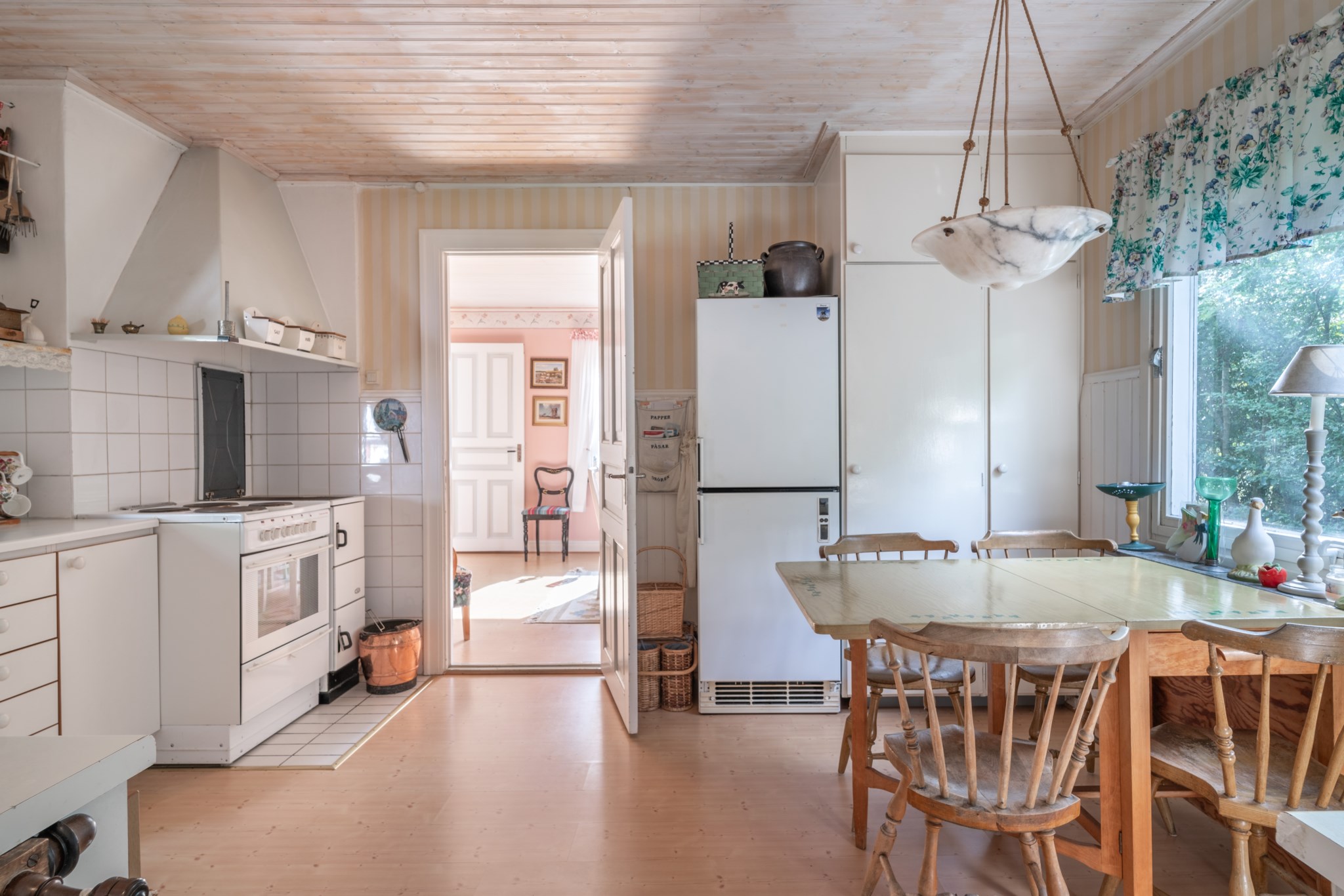 Bostadshuset är i två plan och används idag som fritidsboende. Här finns goda möjligheter att anpassa och modernisera efter egen smak och behov – ett boende med stor potential i ett mycket trivsamt läge.