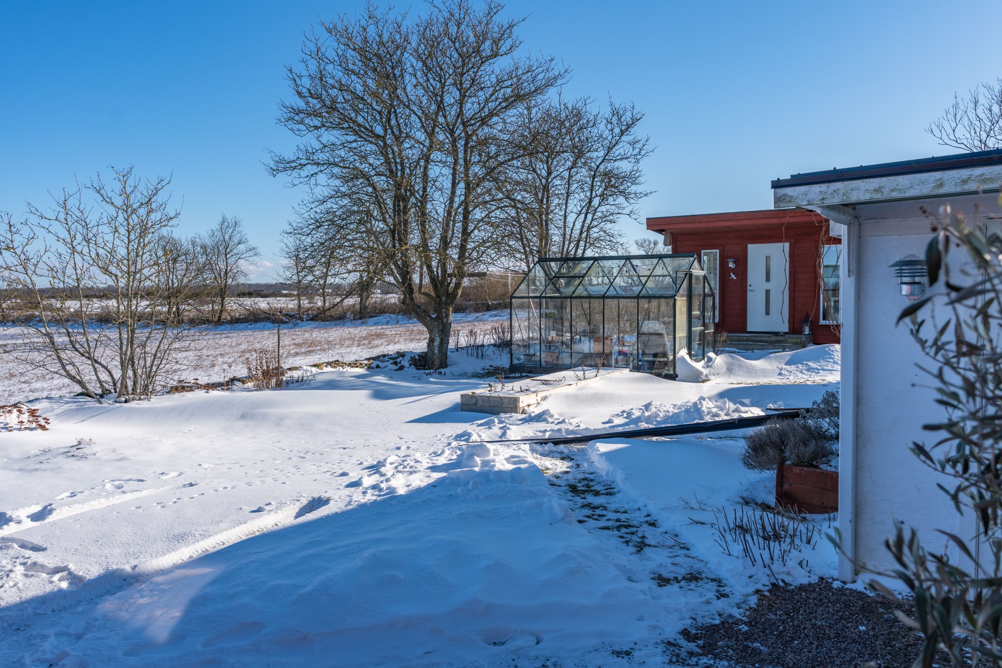 Mellan bostadshuset och stenladan ligger ett trevligt inglasat uterum som binder samman byggnaderna. Själva stenladan är något alldeles extra – med vitputsade väggar, öppen spis och egen ingång. En genuin och mysig miljö med stor potential som ateljé, brygghus, gästrum eller kreativt extrautrymme. Idag används den främst som förråd och snickeri, men möjligheterna är många för den som vill skapa något personligt.
