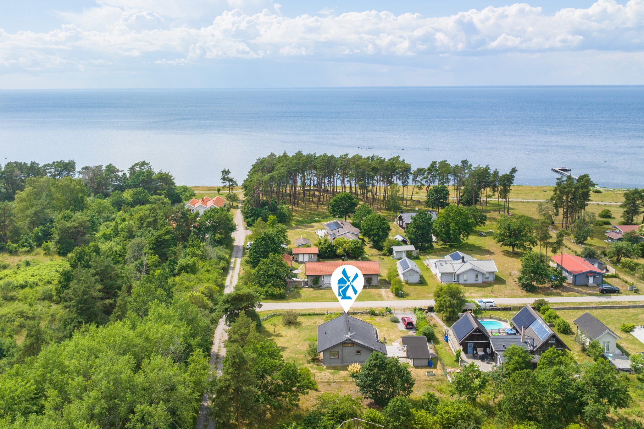 Fastigheten, med utsikt över Kalmarsund, erbjuder en stor insynsskyddad altan i väster, fristående gäststuga, praktisk och välplanerad planlösning samt möjlighet till många sovplatser. Här finns ett badrum med bastu, separat tvättstuga och generösa sällskapsytor som samspelar med köket. Den öppna planlösningen sträcker sig upp till husets sovloft med två sovdelar och en vacker, fri utsikt över sundet.