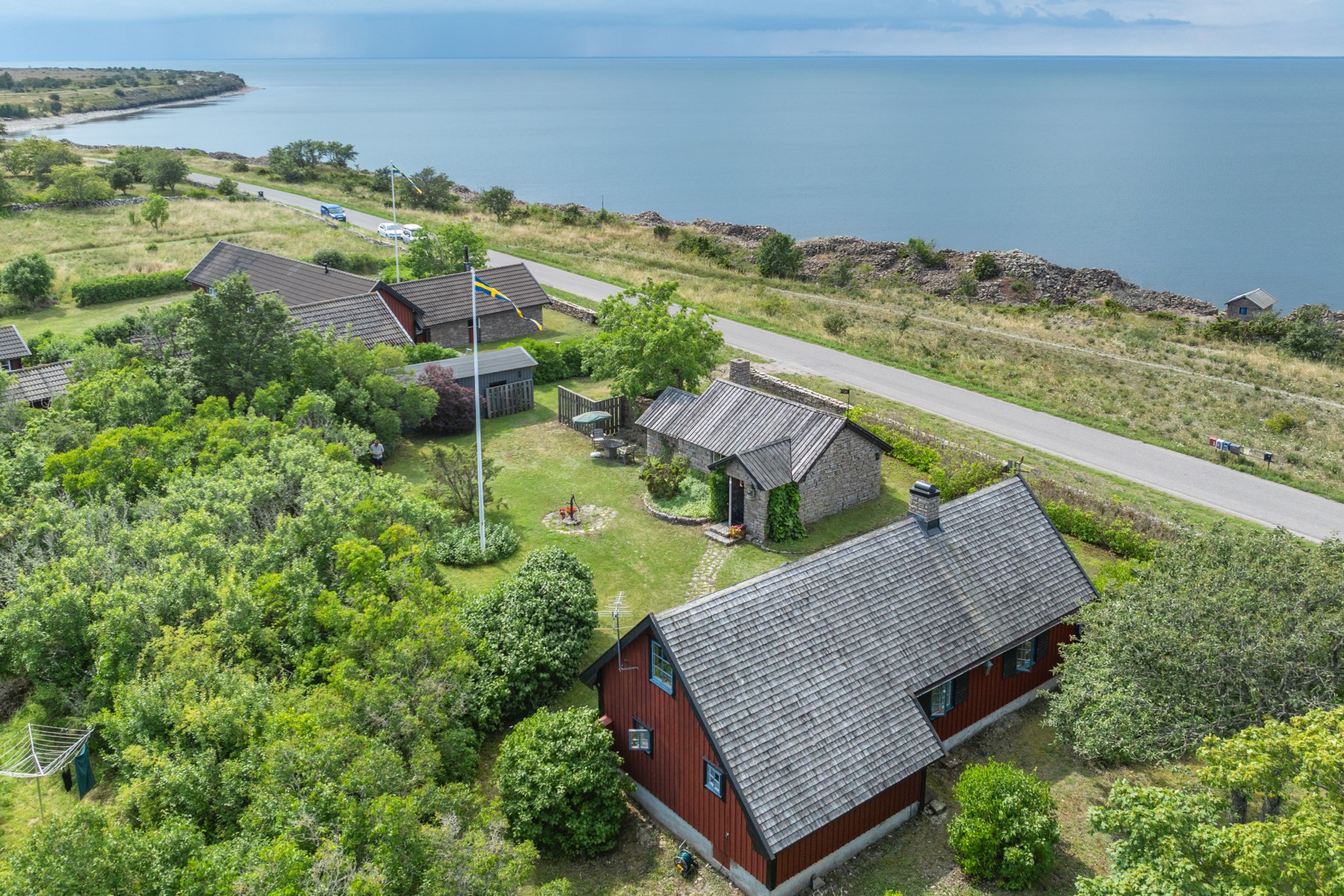 På tomten finns även ett mindre gästhus – kanske den friggebod med en av Ölands vackraste utsikter. En perfekt plats för gäster som får vakna upp till havet utanför fönstret. Här finns även praktiskt förråd och garagebyggnad.