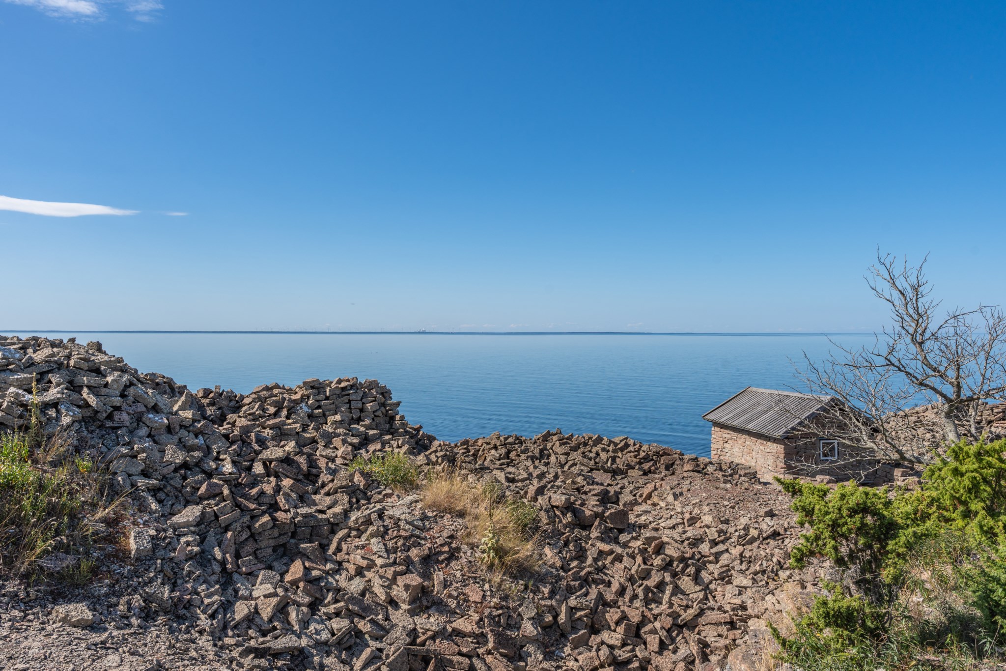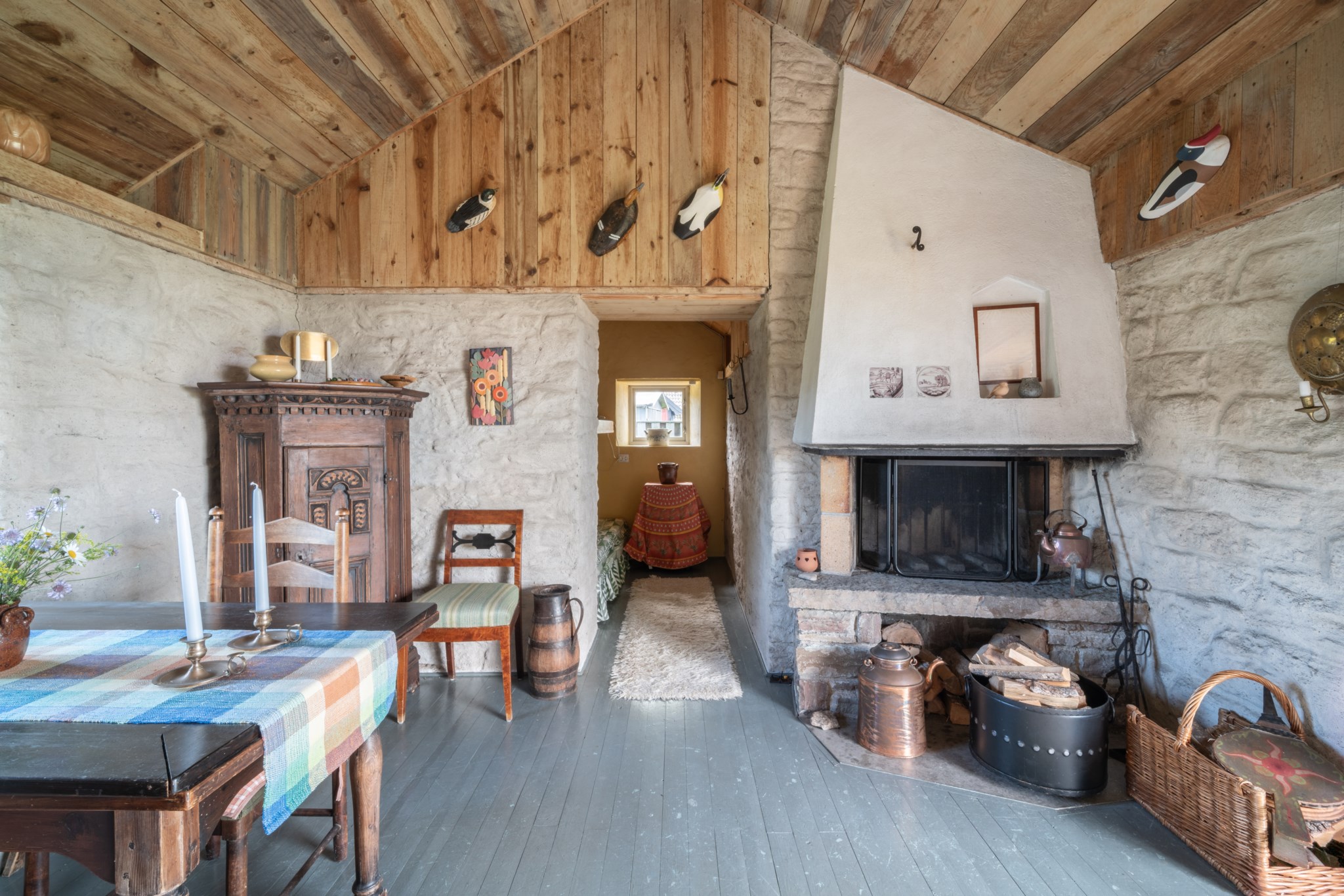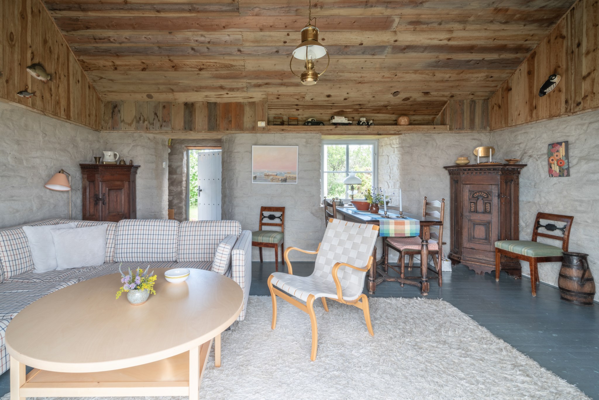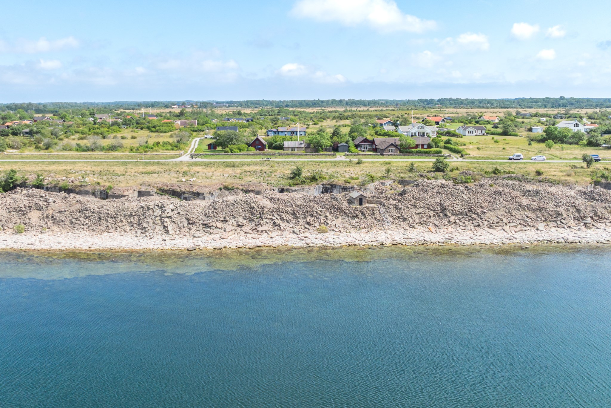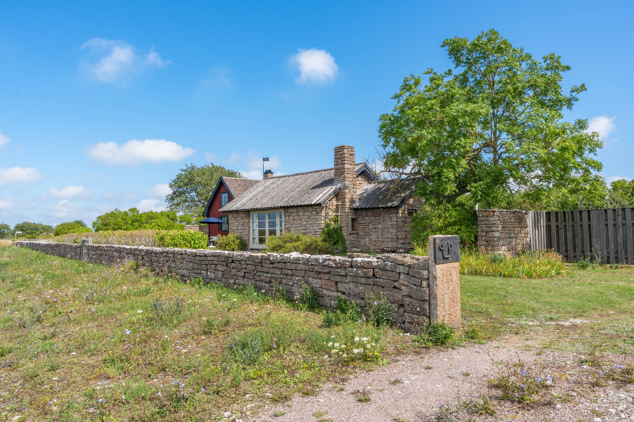En av fastighetens mest unika delar är det vackra kalkstenshuset med anor från 1867. Byggnaden ger gården en alldeles särskild karaktär och skapar ett rum som är något utöver det vanliga – en plats att samlas i, där de djupa fönstren och de stora glaspartierna låter havet och ljuset bli en del av upplevelsen. Här har tankar om utbyggnad funnits, men redan i sitt nuvarande skick är huset en fantastisk miljö för middagar, samtal och stunder tillsammans.