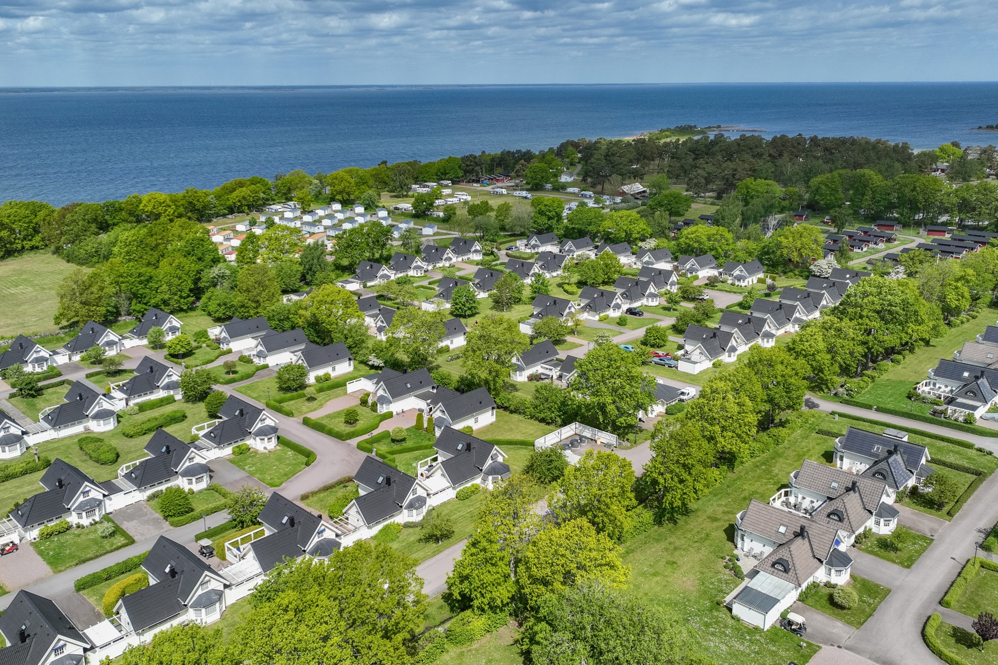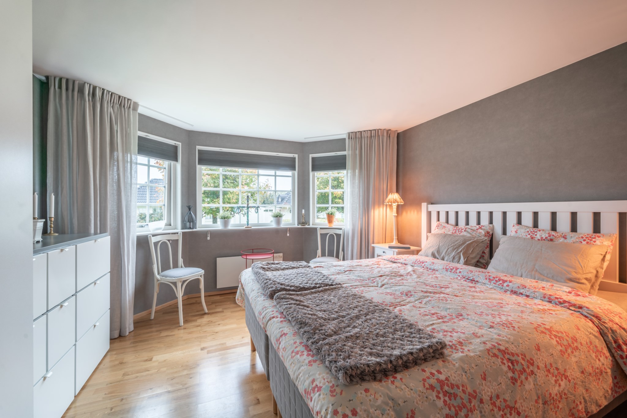 Här finns också asfalterad uppfart med plats för tre bilar och golfbil, luft/luft-värmepump med mobilstyrning, myggnät på dörrar och fönster, mörkläggningsgardiner från OPM och solskyddsgardiner från Joli Interiör.