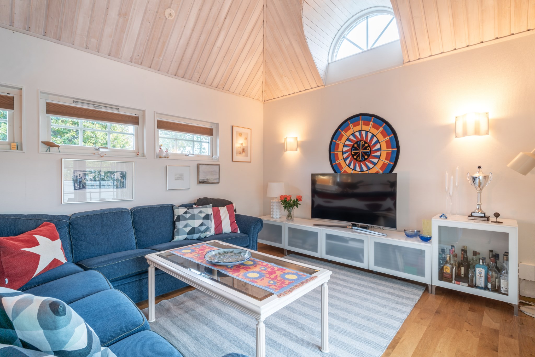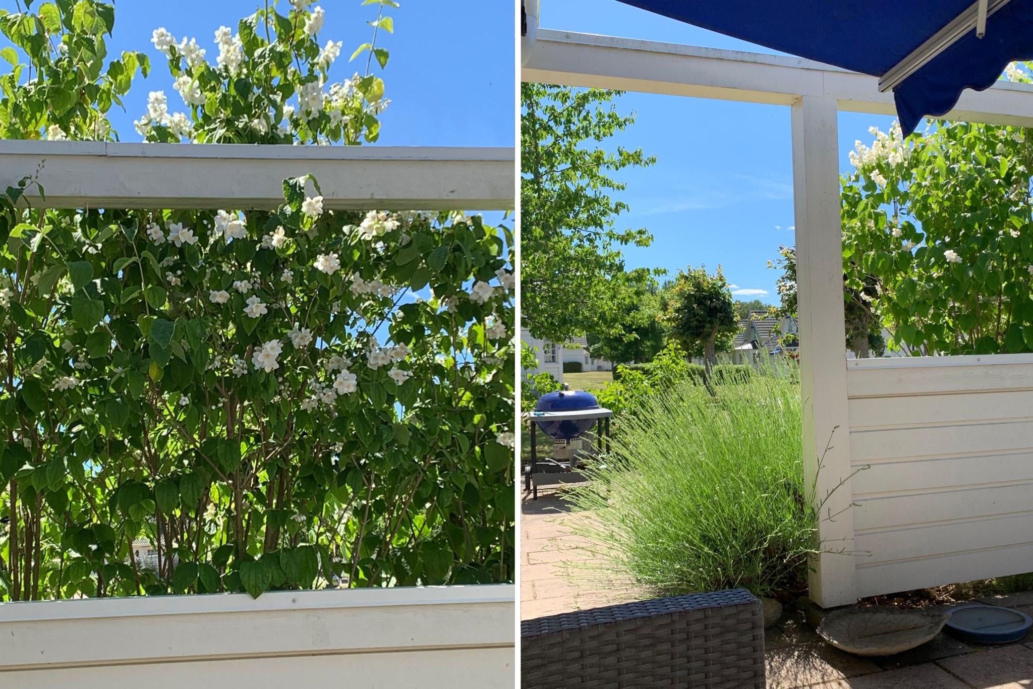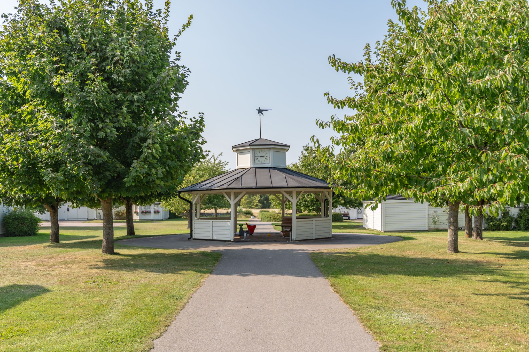 Det rymliga allrummet med braskamin (nyare modell) har utgång till en härlig altan i västerläge. Pergolan, som ramas in av vinrankor, bjuder in till ljumma kvällar med sol långt in på kvällen. En markis och ”see-through”-vindskydd ger både lä och flexibilitet. Förrådet har byggts ut till dubbel storlek utan att stjäla yta från uteplatsen – dessutom vinterisolerat och med extra kyl/frys.