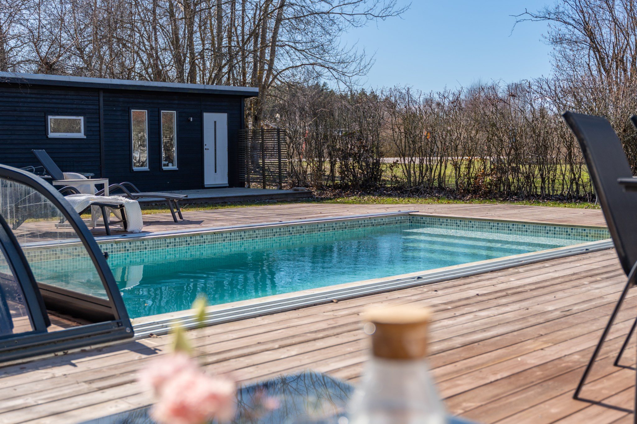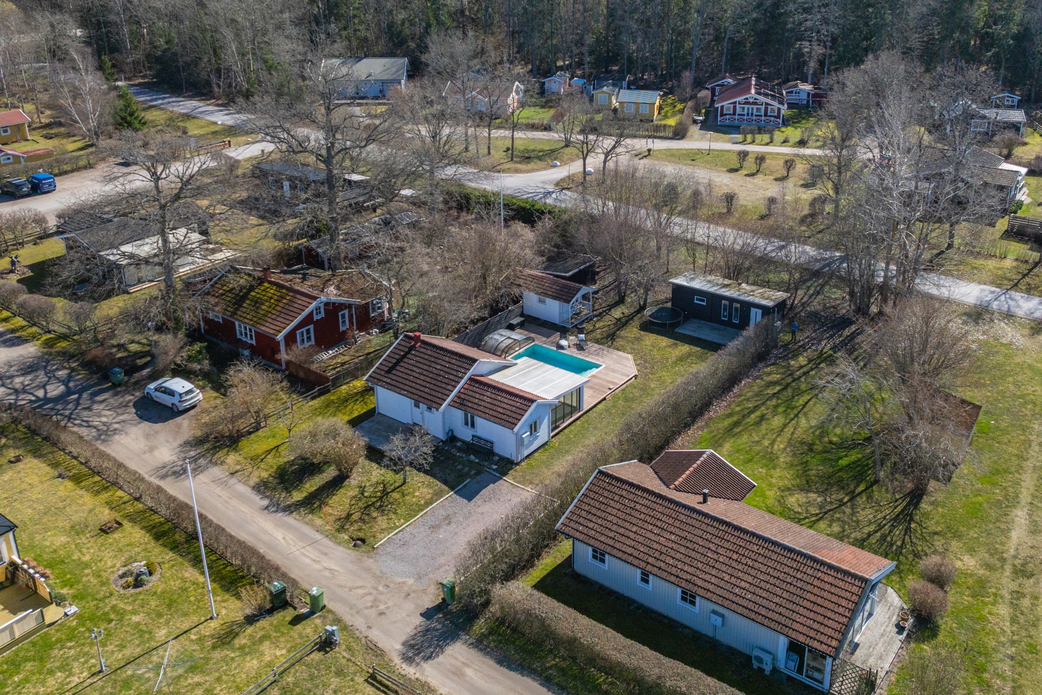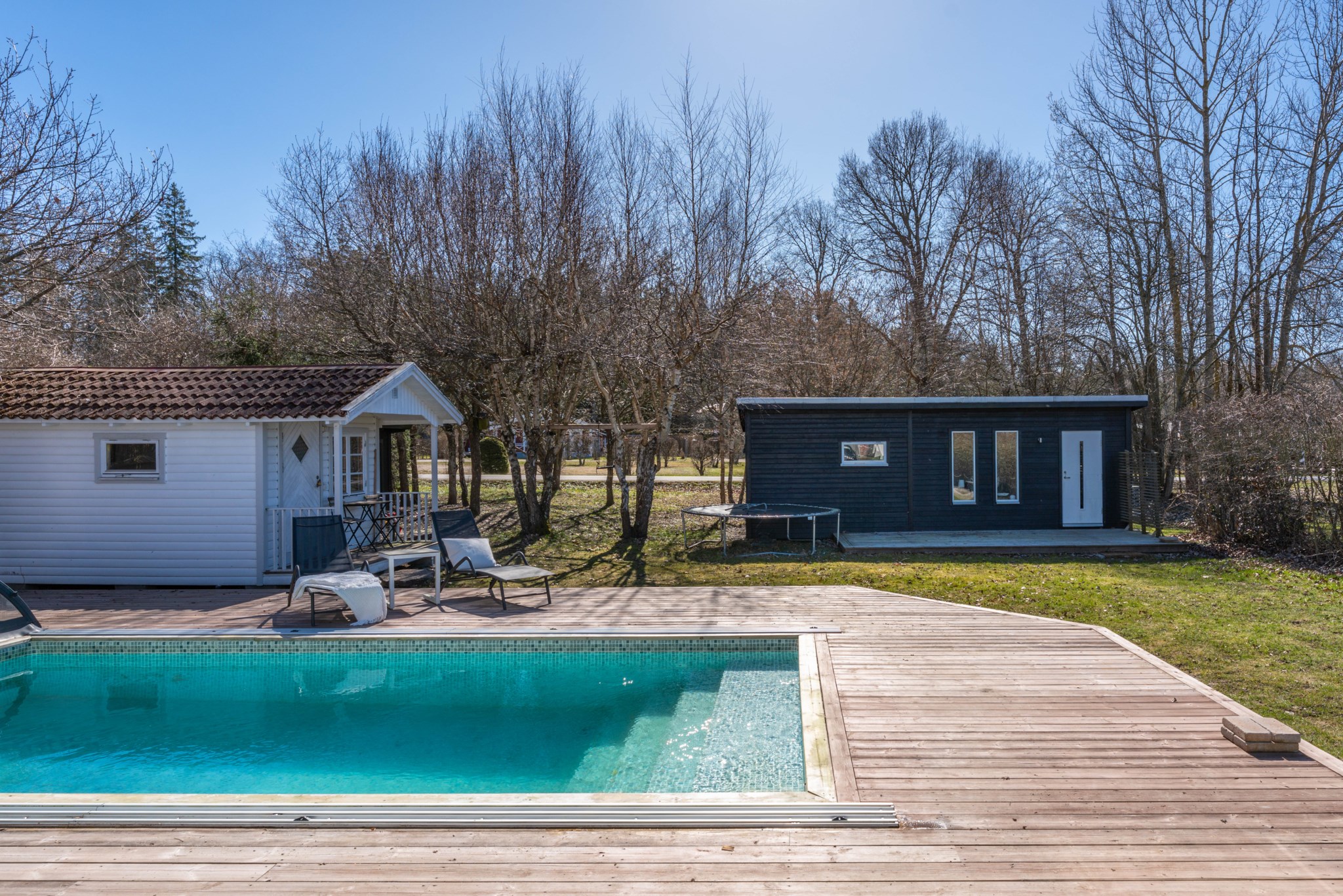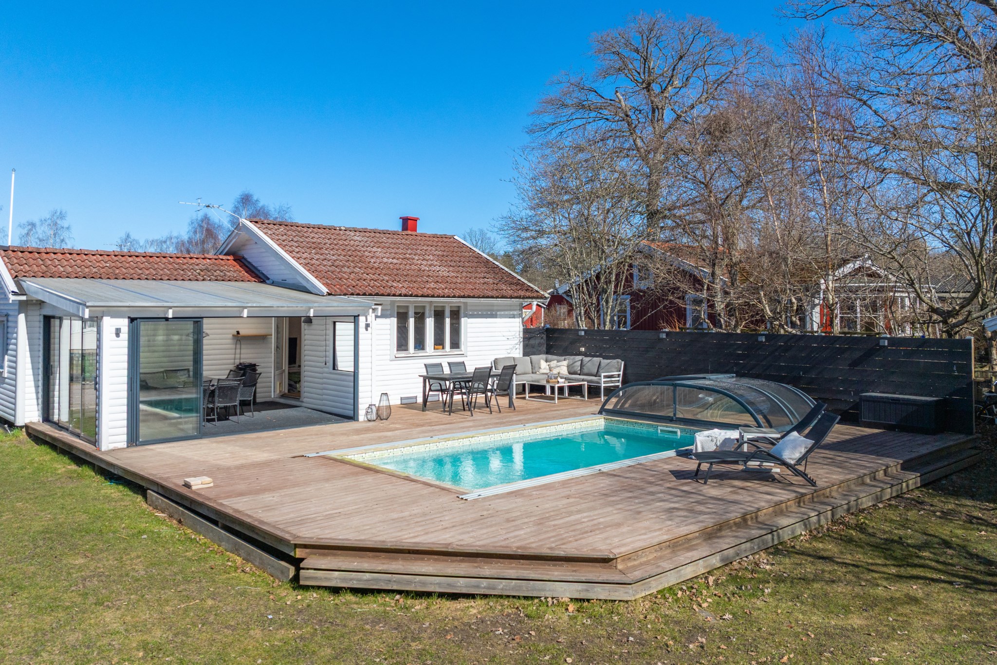 Välkommen till ett genomtänkt fritidsboende på insynsskyddad tomt i populära Saxnäs. Här erbjuds ett härligt poolområde med stort trädäck – en naturlig samlingsplats för sommarens alla stunder. Med två gästhus och generöst med sovplatser finns gott om utrymme för både familj och vänner.
