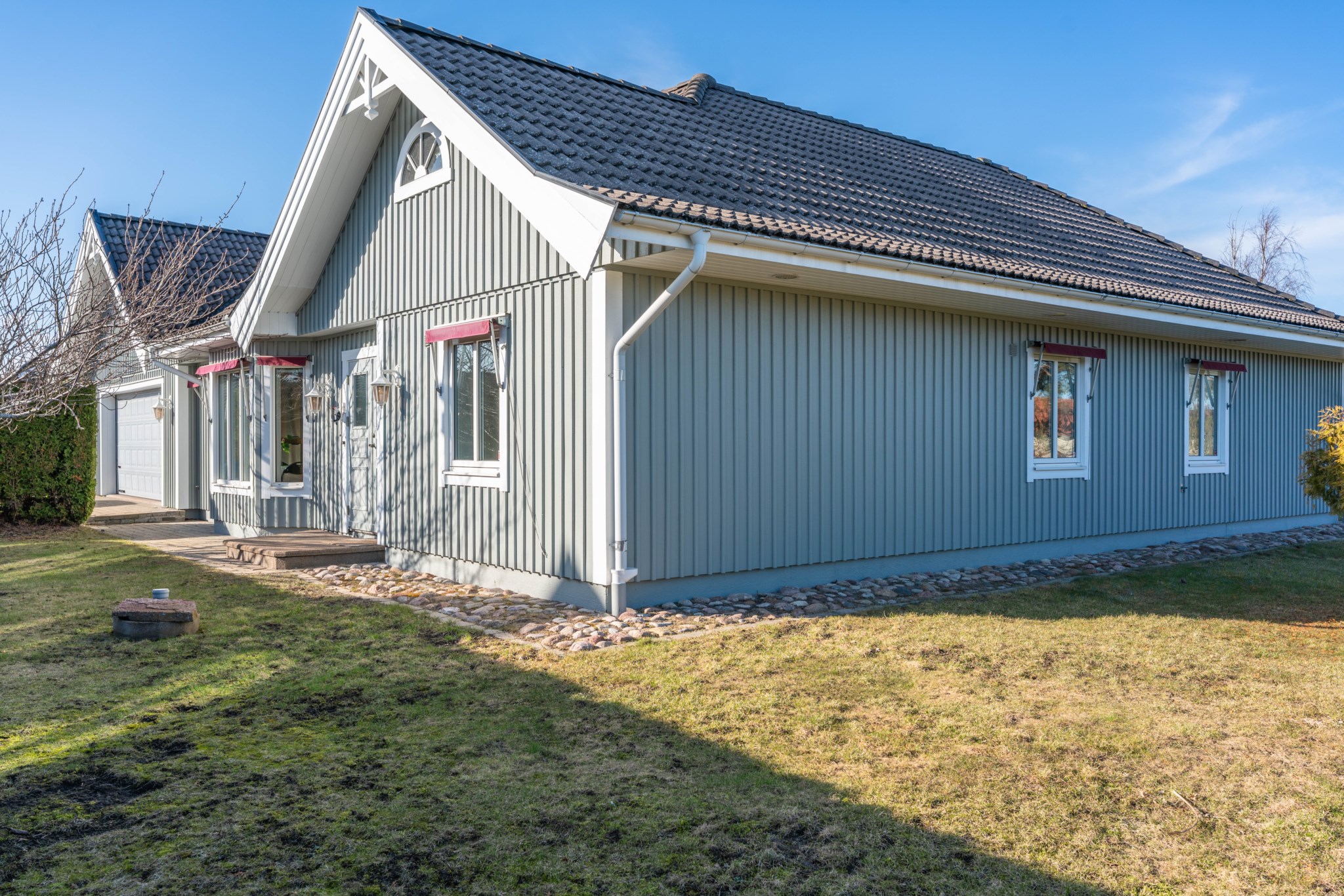 Tomten om 827 kvm är lättskött och erbjuder både privata ytor och öppna sällskapsytor. Här finns även ett stort dubbelgarage och gott om plats för parkering.