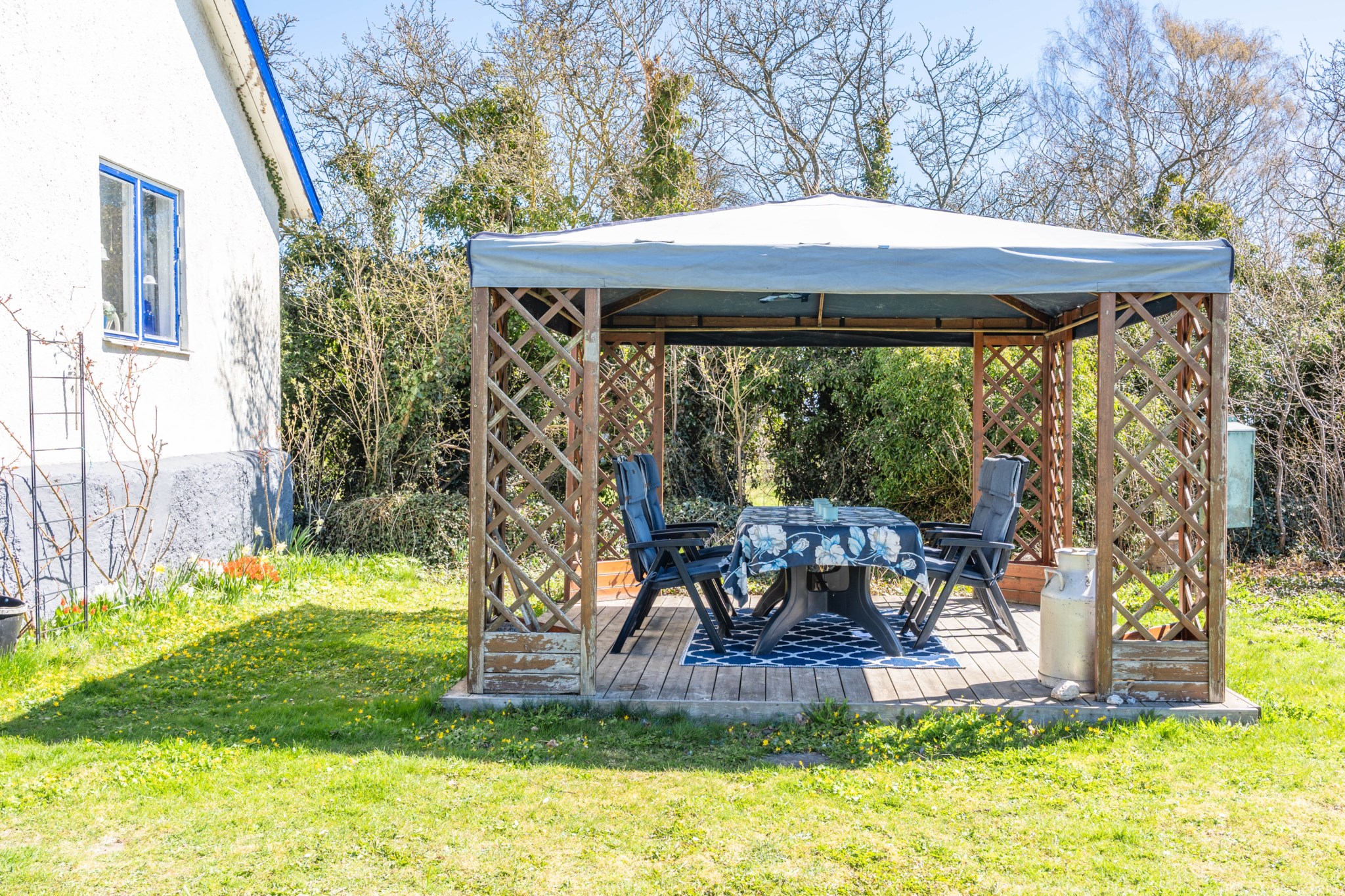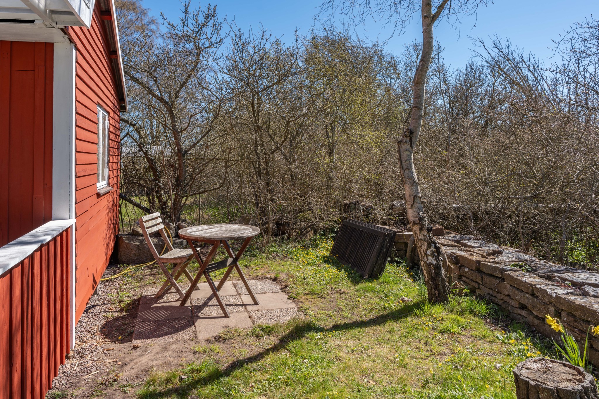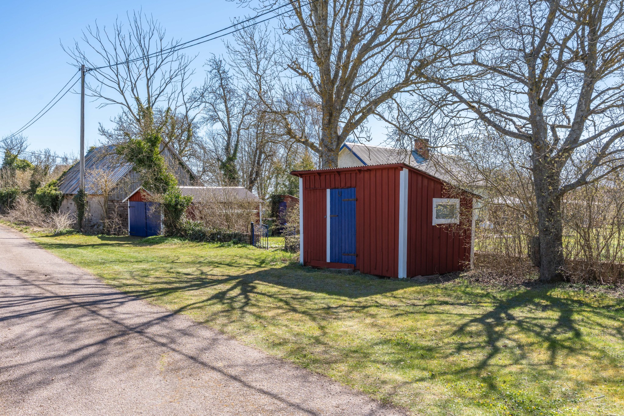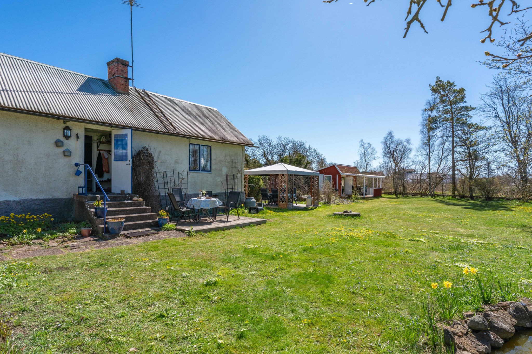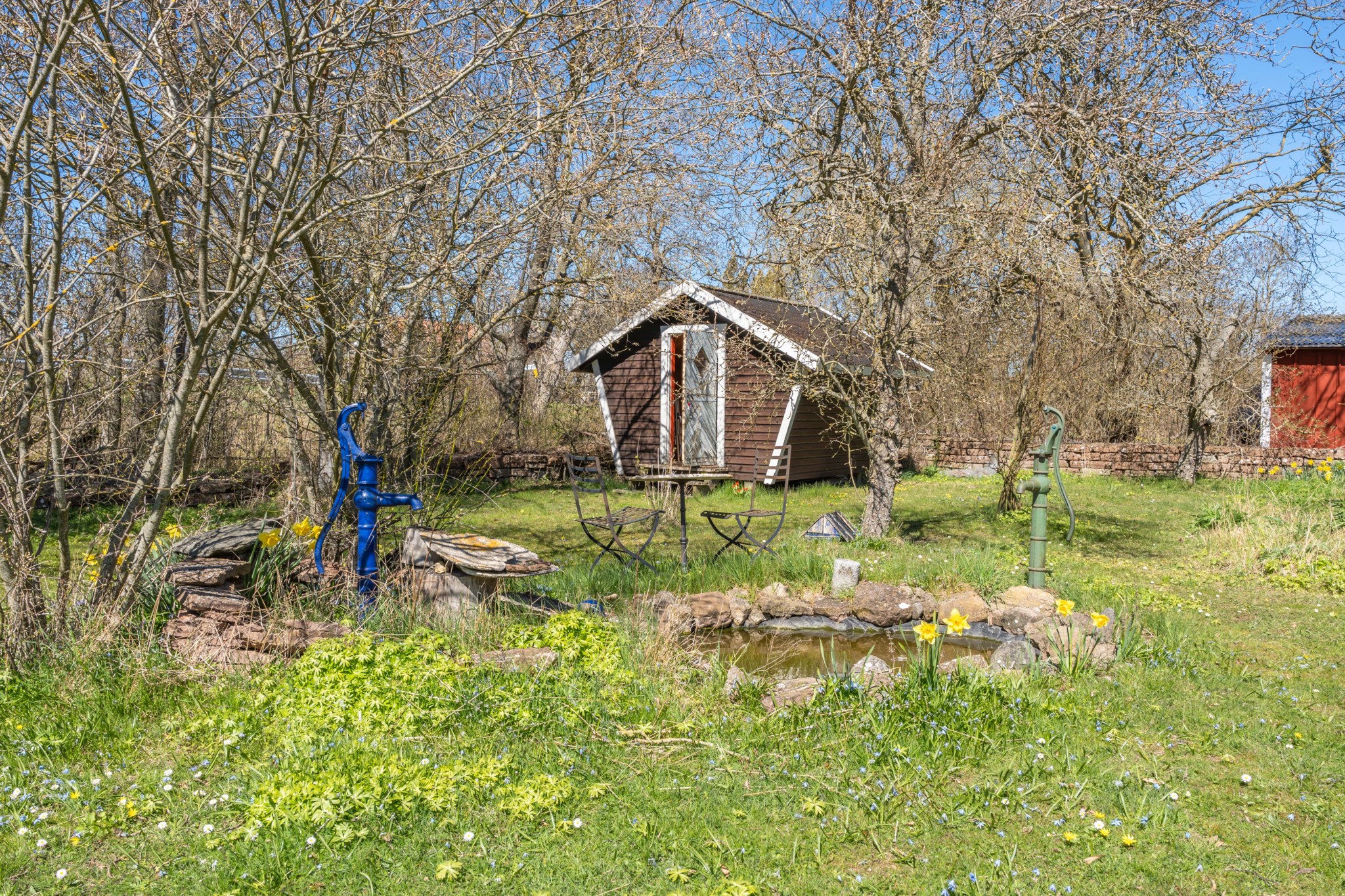 På den generösa och lättskötta tomten möts du av en genuin öländsk miljö med vackra kalkstensmurar som ramar in fastigheten. Den stora gräsytan ger gott om plats för lek, odling och avkoppling. Här finns vårblommande inslag, äldre fruktträd, en liten damm samt dekorativa stenpartier. Den takförsedda paviljongen blir en naturlig samlingsplats under sommarhalvåret.