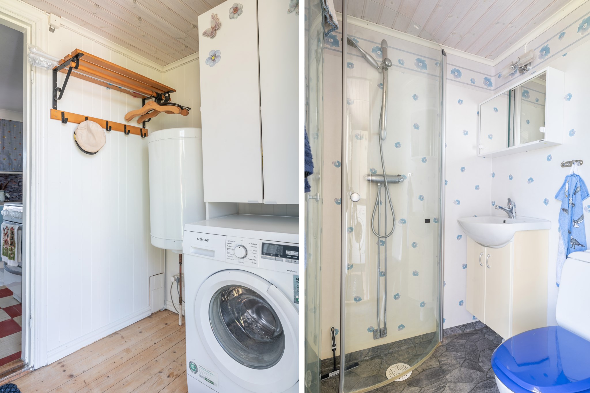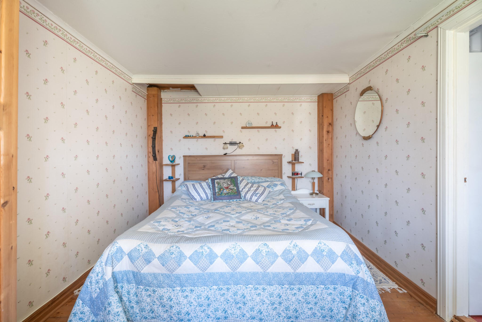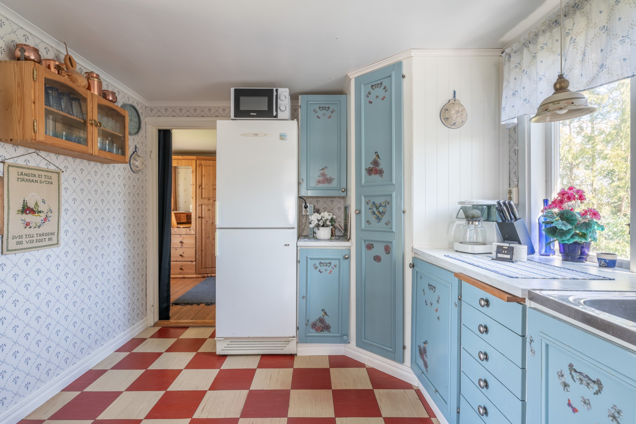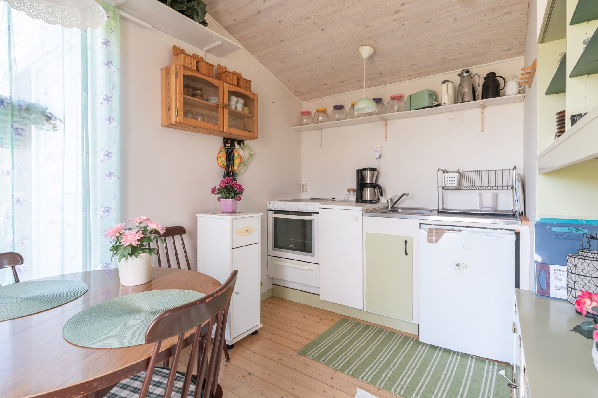 Bostaden erbjuder en varm och hemtrevlig känsla. Den välkomnande hallen leder vidare till ett praktiskt kök med lantlig charm, platsbyggt skafferi och köksinredning från 2021. Det rymliga allrummet bjuder in till både middagar och avkoppling framför den värmande braskaminen, som förhöjer trivseln året om. Sovrummet är rofyllt med plats för dubbelsäng, och intill hallen finns ett funktionellt badrum.