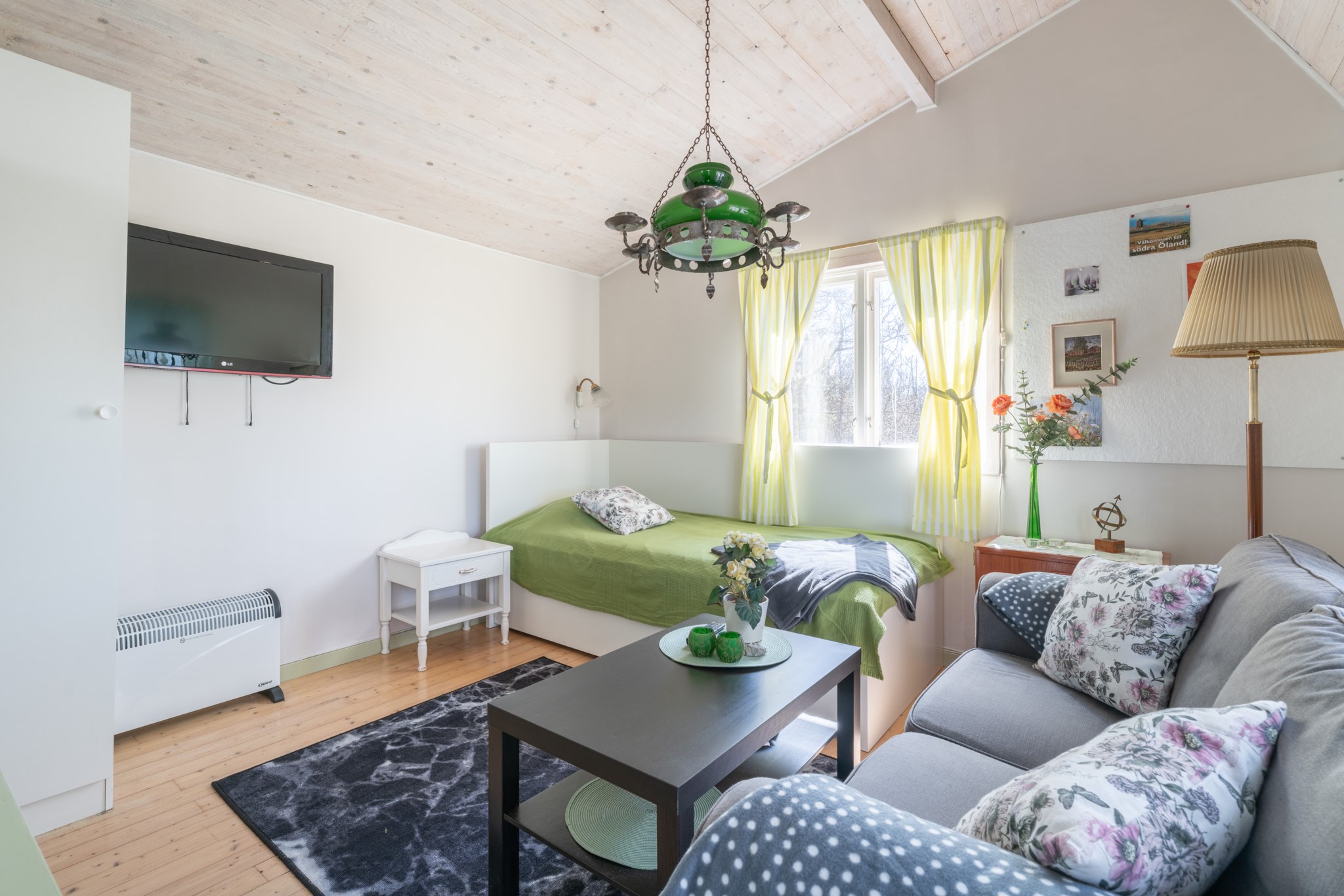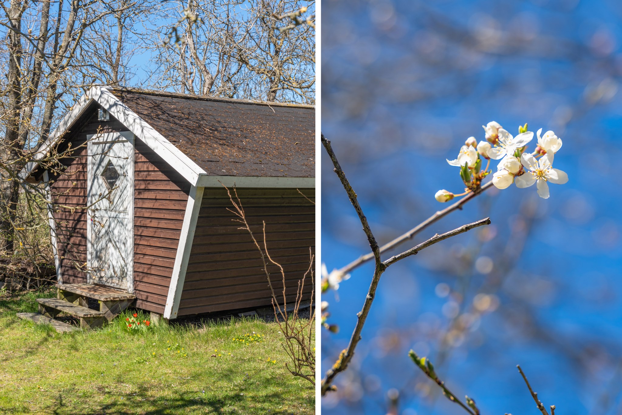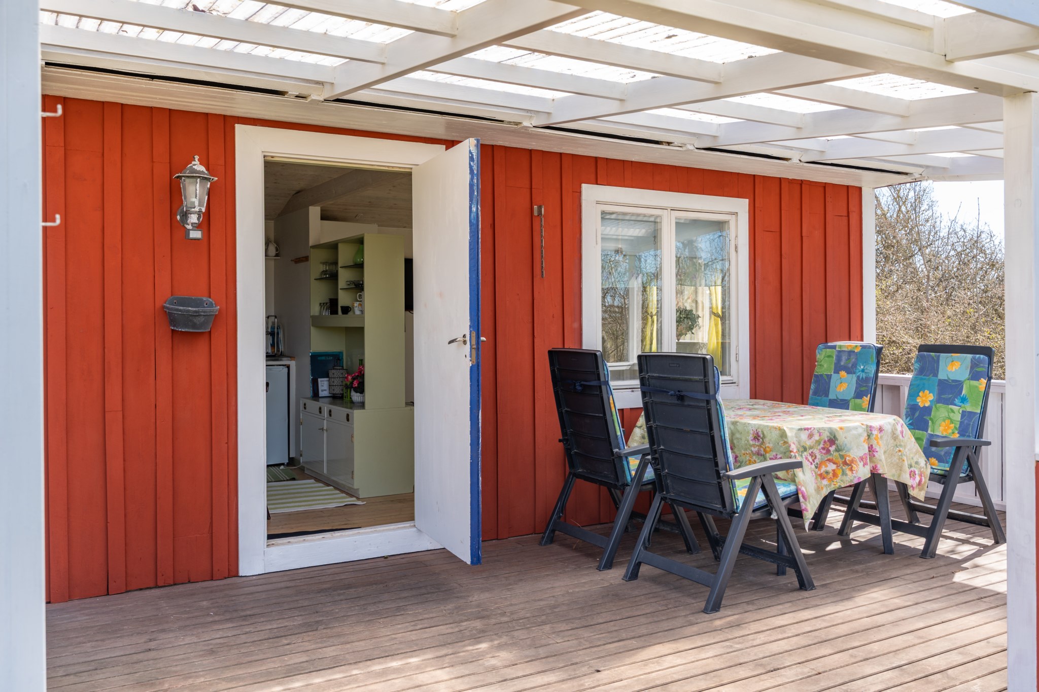 Utöver huvudbyggnaden finns flera byggnader på tomten, vilket skapar goda möjligheter till övernattning för familj och gäster. Den charmiga gäststugan erbjuder flera sängplatser, ett enklare kök samt matplats, och kompletteras av en uteplats under tak samt ett inrett utedass – perfekt för sommarens besök.