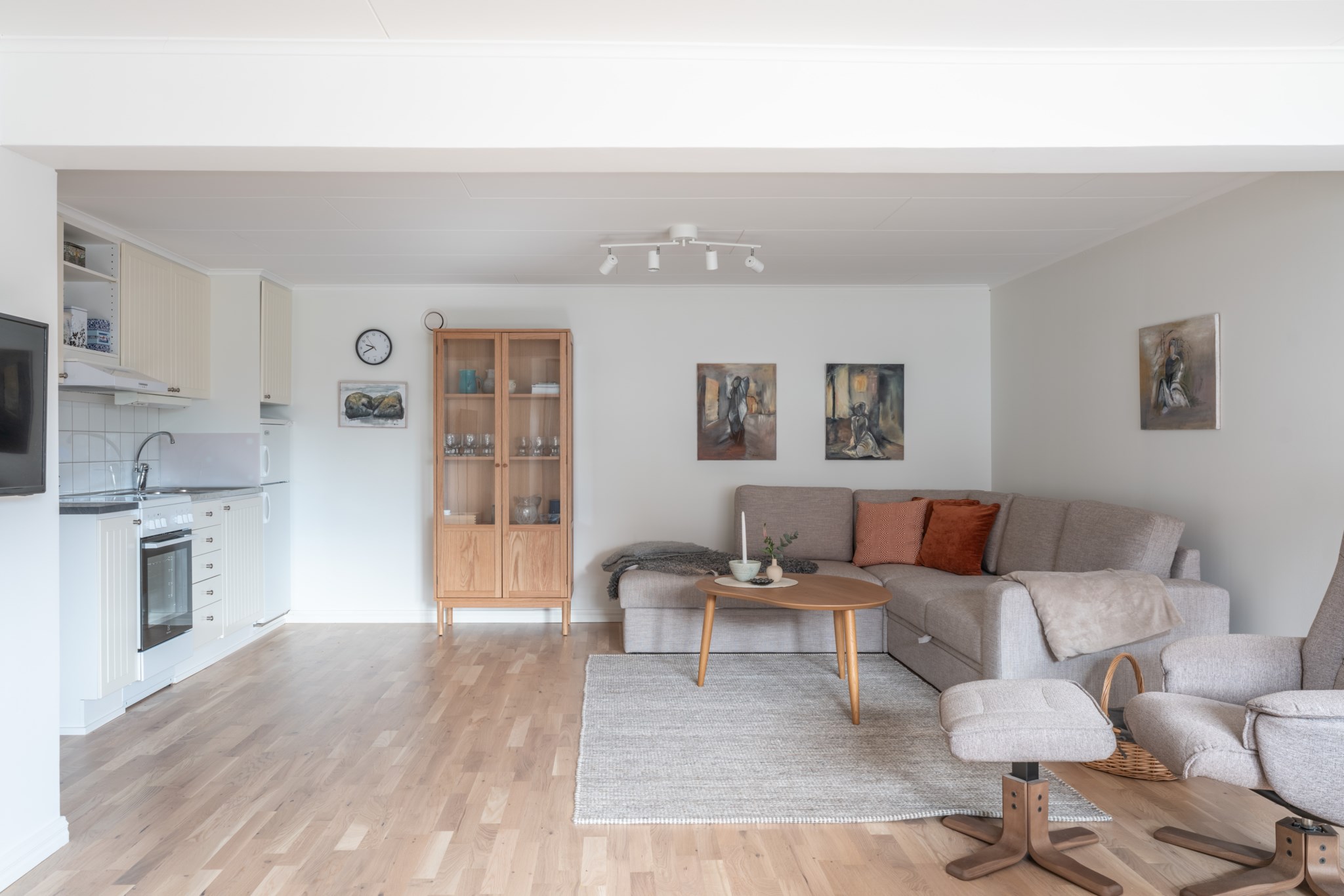 Välkommen till lägenhet 28 – en charmfull och välplanerad bostad på eftertraktade Äleklinta gård. Här möts du av en inbjudande uteplats som leder dig in i ett ljust och harmoniskt hem med öppen planlösning mellan kök och vardagsrum – en social och trivsam yta för både avkoppling och umgänge.
