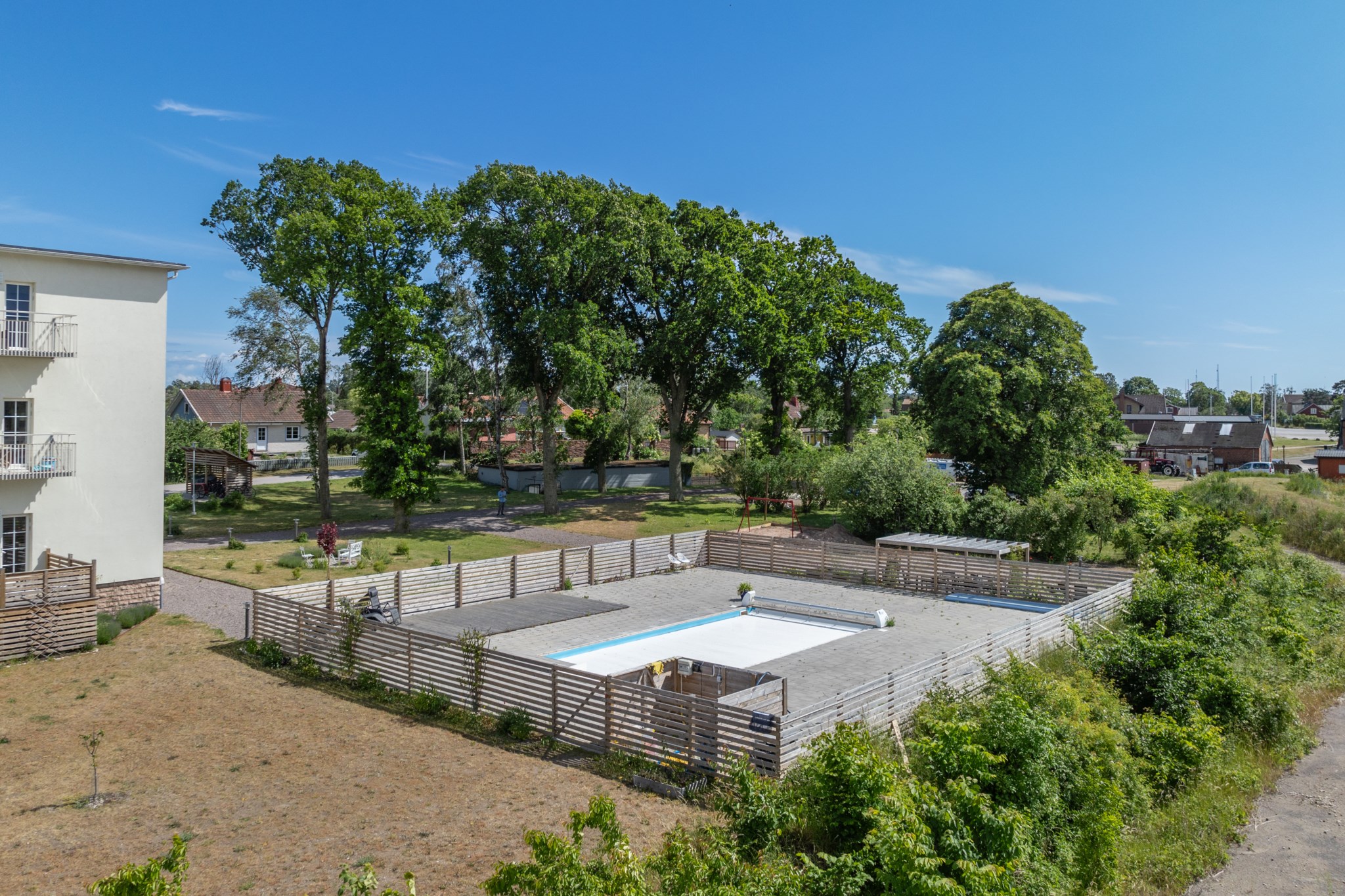Gällande parkering, fiber och pool.