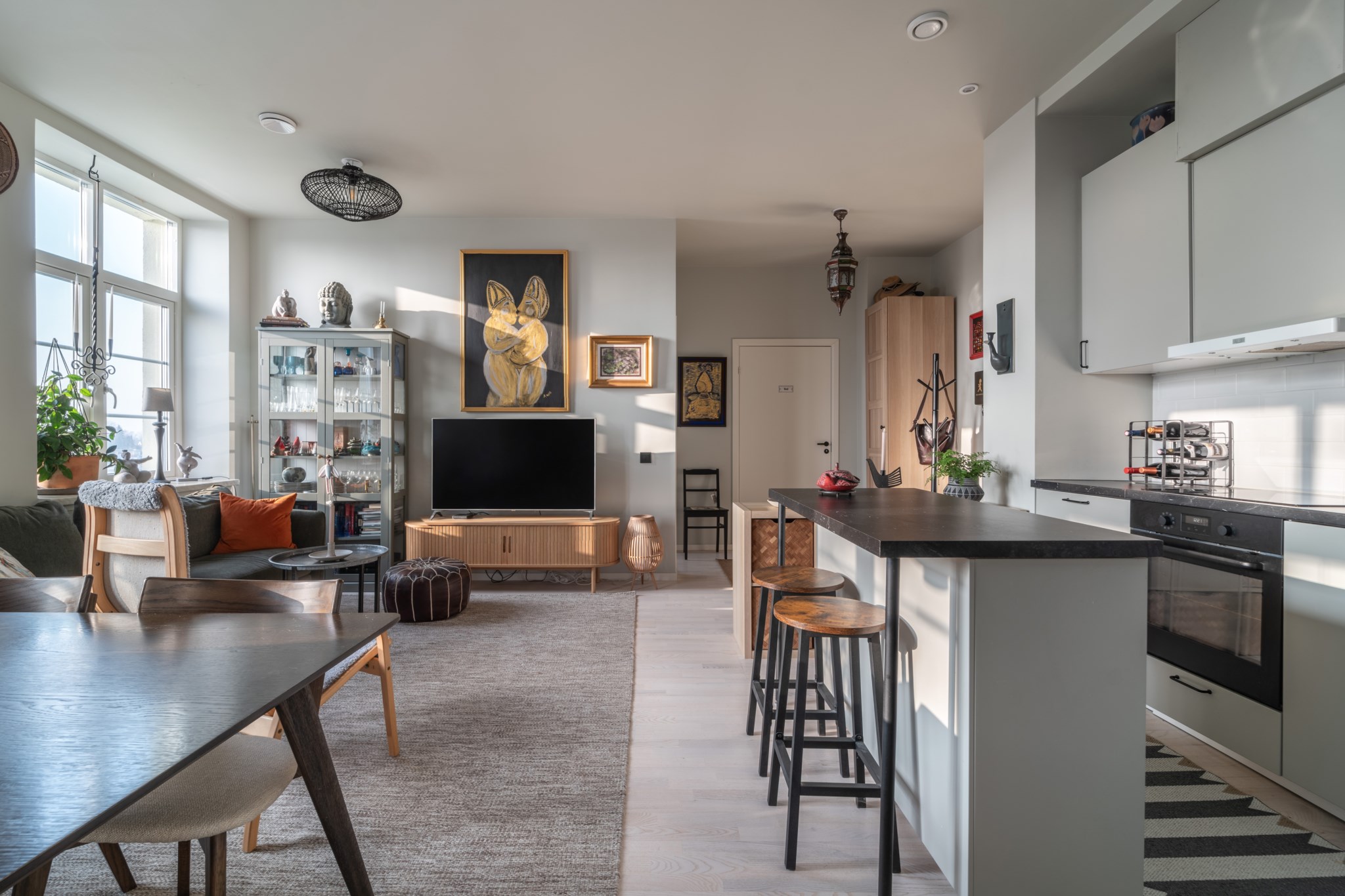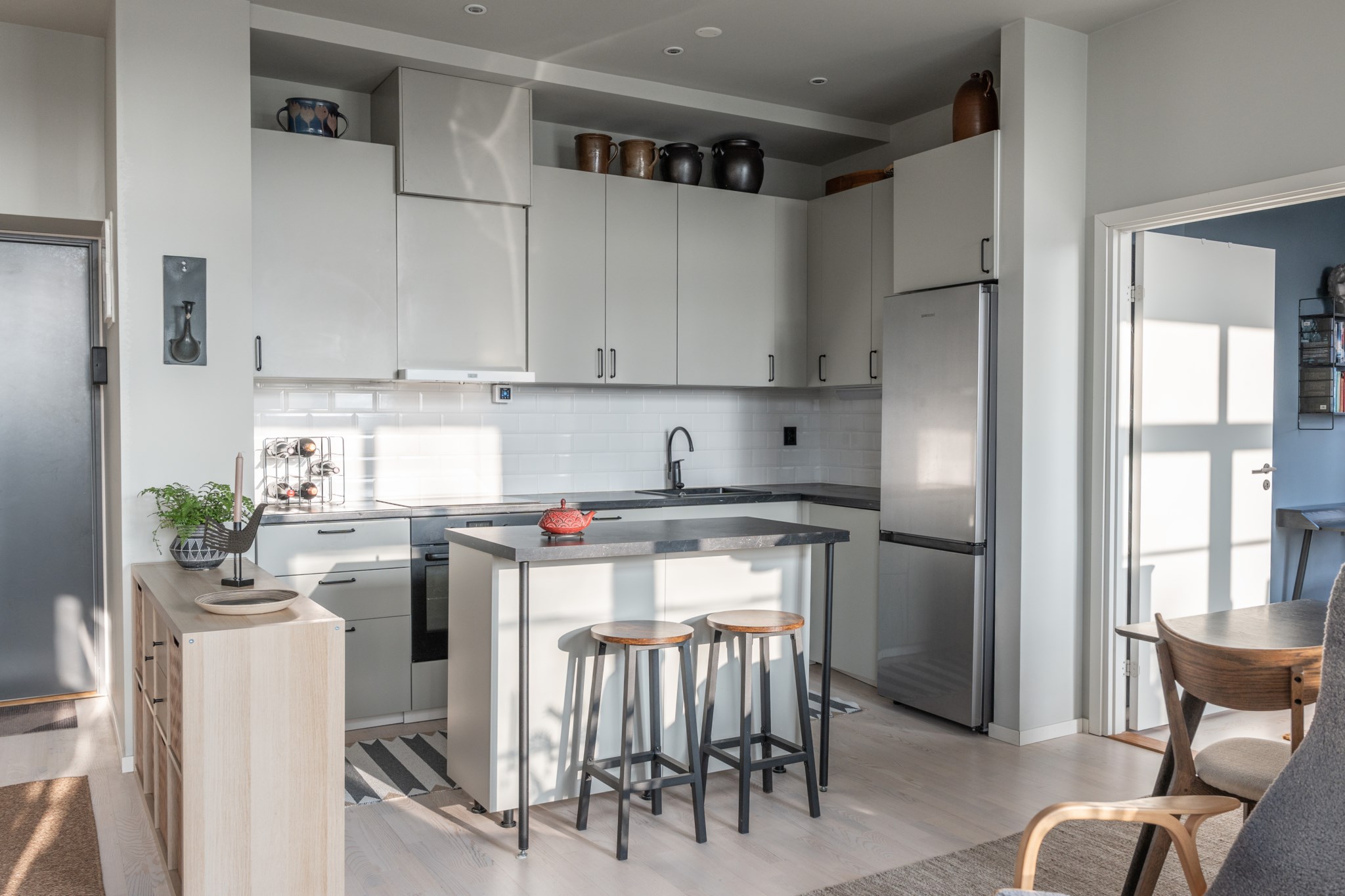 Lägenheten är optimalt planerad och har mycket fönster som bidrar till härligt ljusflöde. Bosätt dig med absolut nyskick med ekparkett och ett smakfullt kök som erbjuder trevlig och social planlösning tack vare öppen planlösning med vardagsrummet. En sak som är både intressant och spännande är designen på lägenheten. Designkonceptet är döpt till "ocean beige" för att färgerna i hemmet ska anknyta till det närliggande havet. Där golvet representerar sanden, och de olika kulörerna på kök och väggar symboliserar havet i dess olika blåa färger. Fördelat över 65 kvadratmeter inrymmer tre rum och kök med allt som behövs för en trivsam och bekväm vardag. Ta klivet in till den inbjudande hallen som erbjuder bra förvaring. Direkt till höger ligger det helkaklade badrummet som har smakfulla kulörer och inredning. Rakt fram uppenbarar sig det harmoniska köket med natursköna färger, bra förvaring och välkomnande matlagningsytor. I öppen planlösning med köket ligger vardagsrummet som utan problem inrymmer middagsbord, soffgrupp och fåtölj.