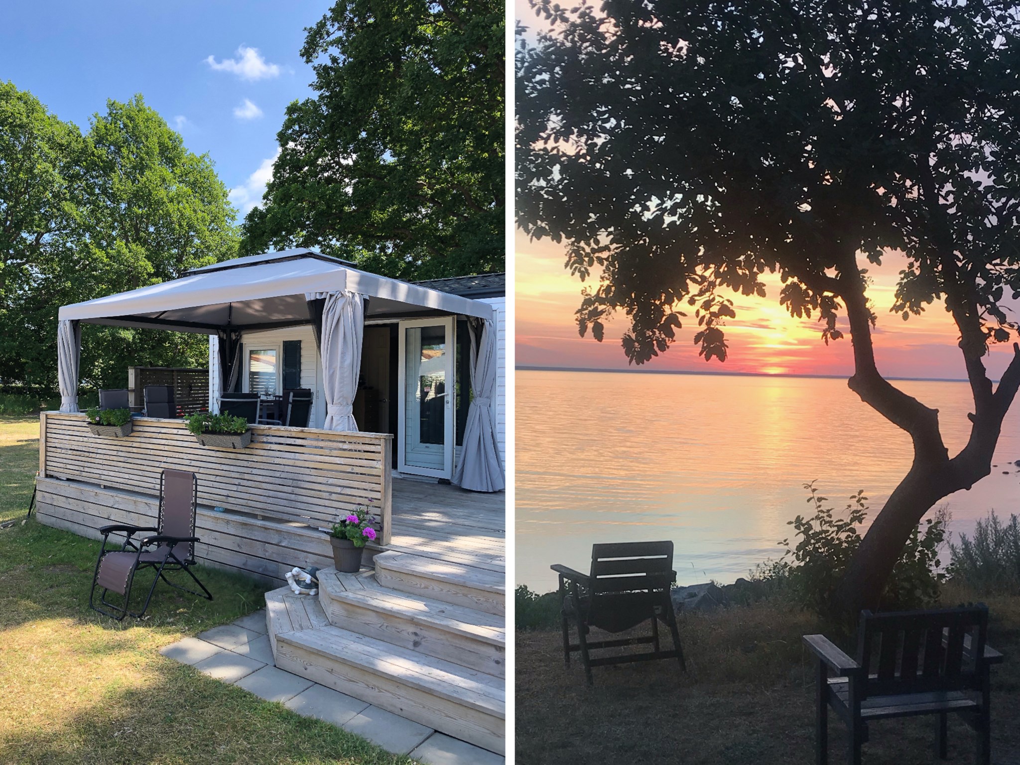 Bakom villavagnen finns en stor gräsyta med fotbollsplan, perfekt för lek och aktivitet för både stora och små. För den som uppskattar golf ligger Ekerums populära golfbanor bara en kort promenad bort, med välskötta fairways och havet som kuliss. Dessutom finns en bastu som kan hyras, endast cirka 50 meter från vagnen – här kan du njuta av värmen och en fantastisk utsikt över havet.