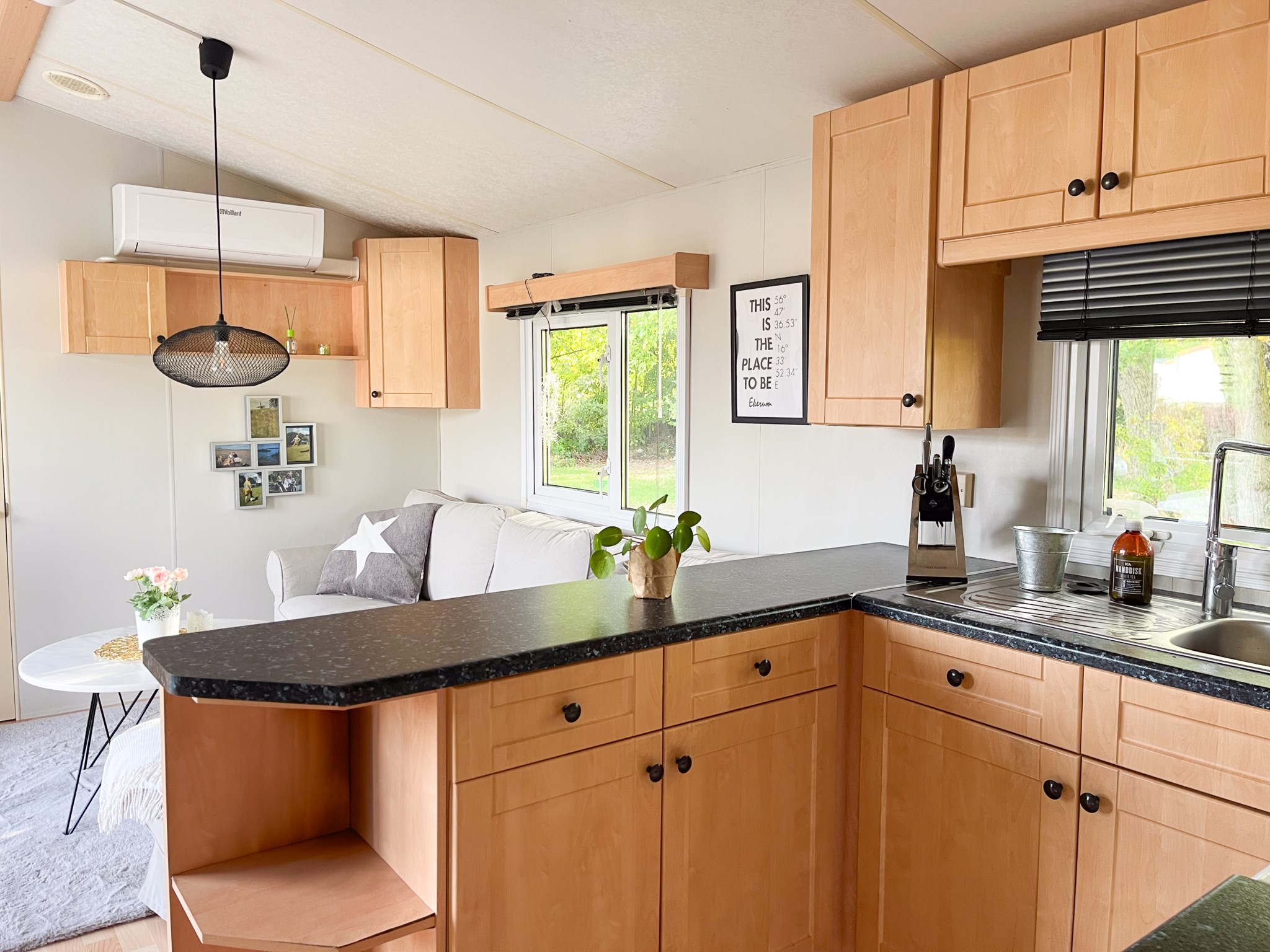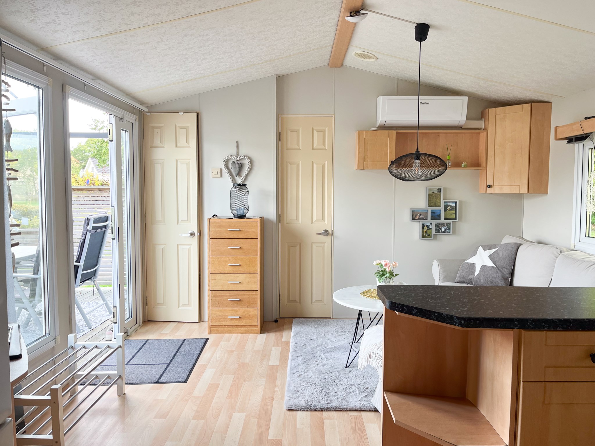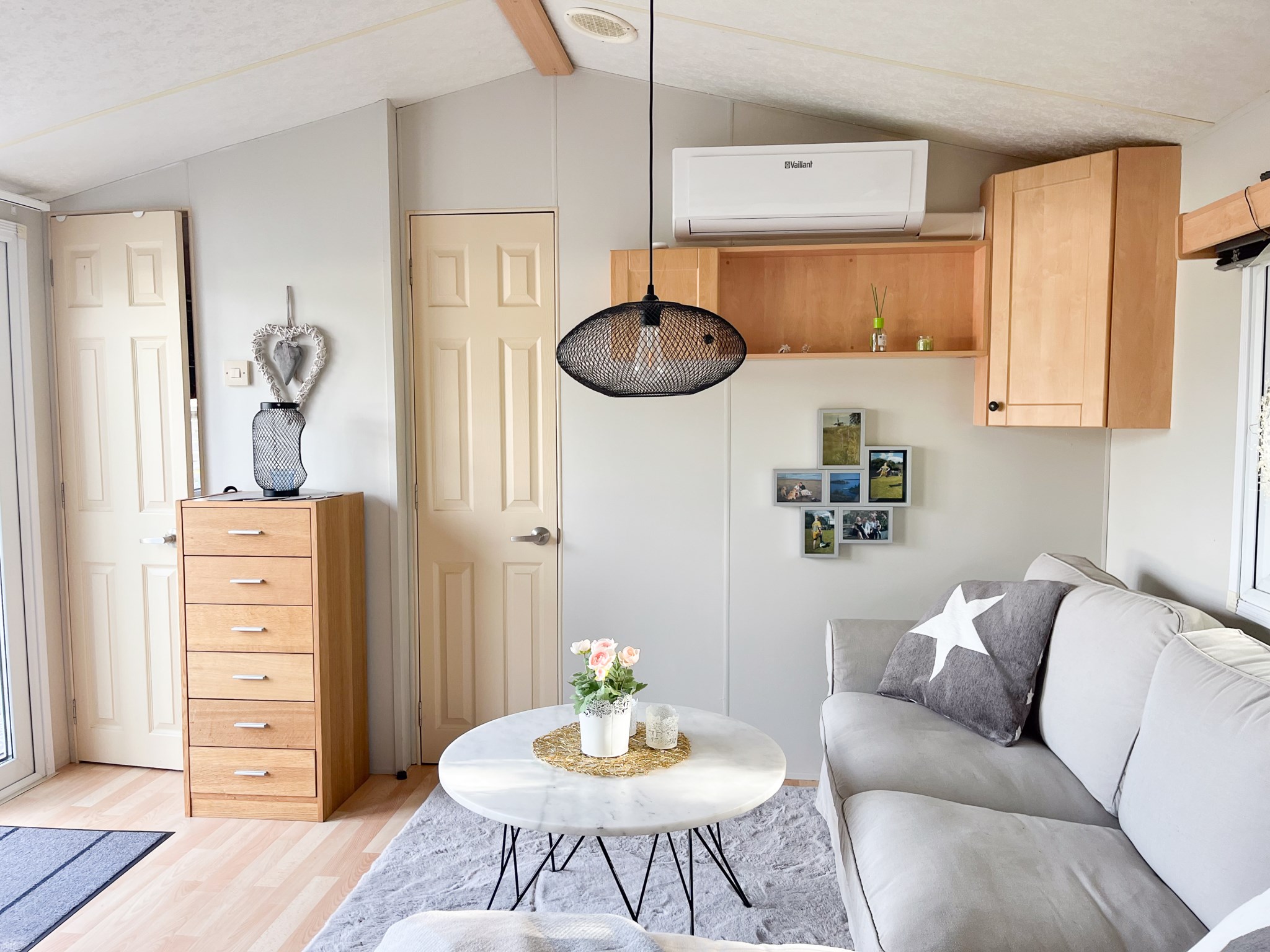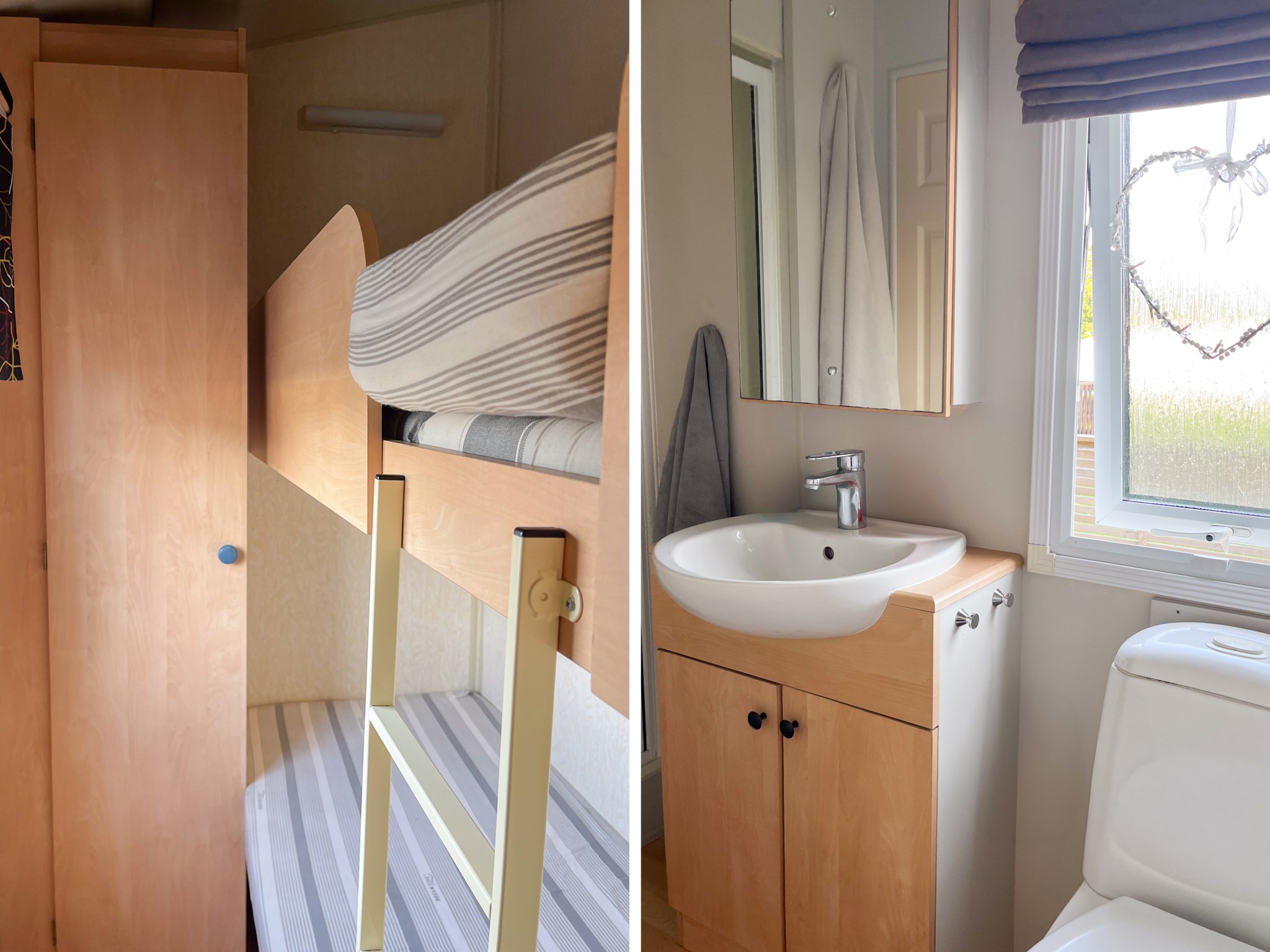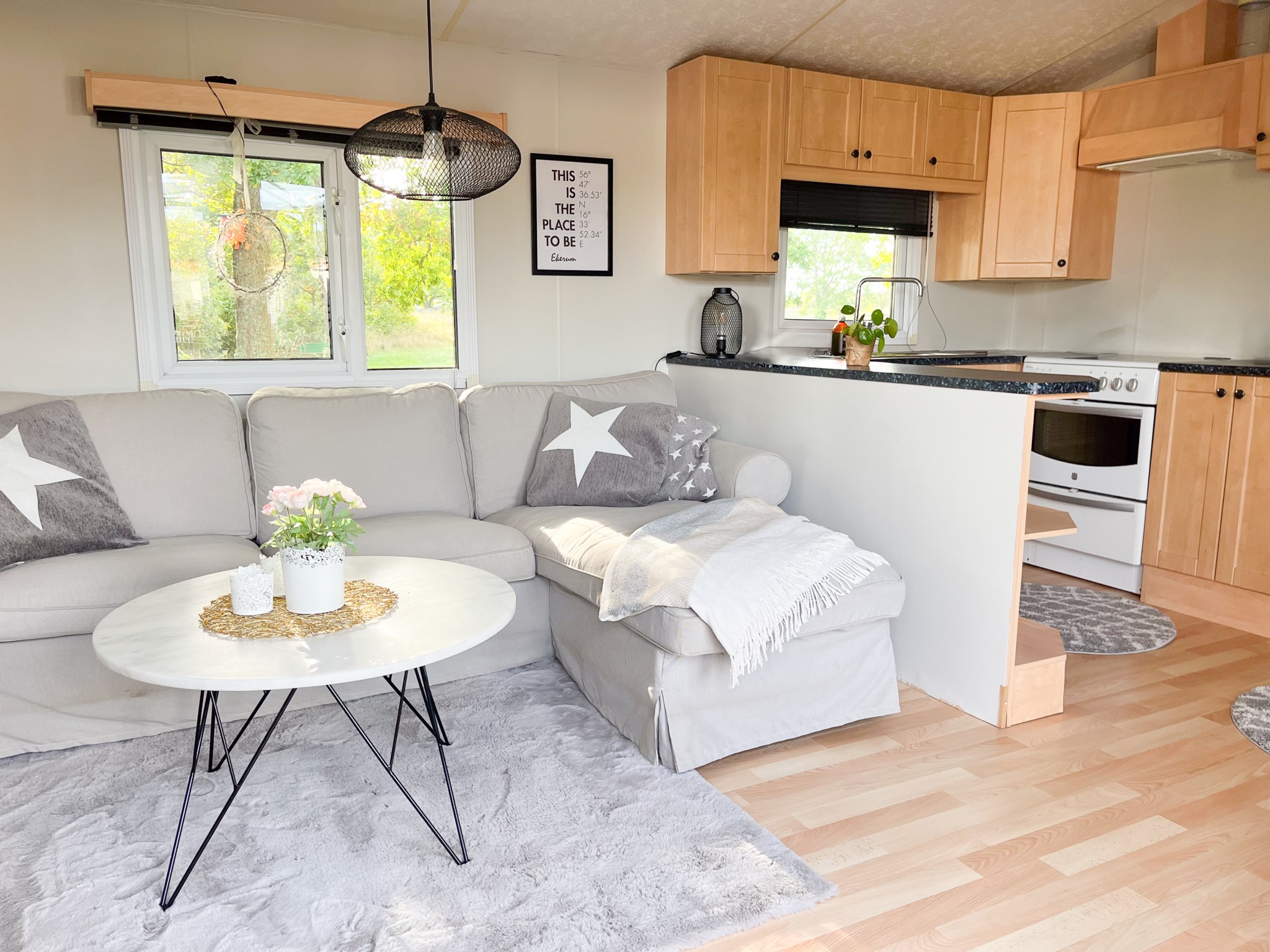 Villavagnen är smart planerad på 30 kvadratmeter med tre sovrum, varav ett större, ett badrum samt ett ljust allrum med kök. Inredningen är ljus och trivsam med ett praktiskt kök som rymmer det mesta. Här finns plats för hela familjen, och allt är färdigt för inflytt – samtliga inventarier ingår, så det är bara att packa väskan och flytta in för att börja njuta från dag ett. Ett stort plus är hörnläget, den luftiga känslan runt tomten och att villavagnen är utrustad med luftvärmepump som ger både värme och kyla.