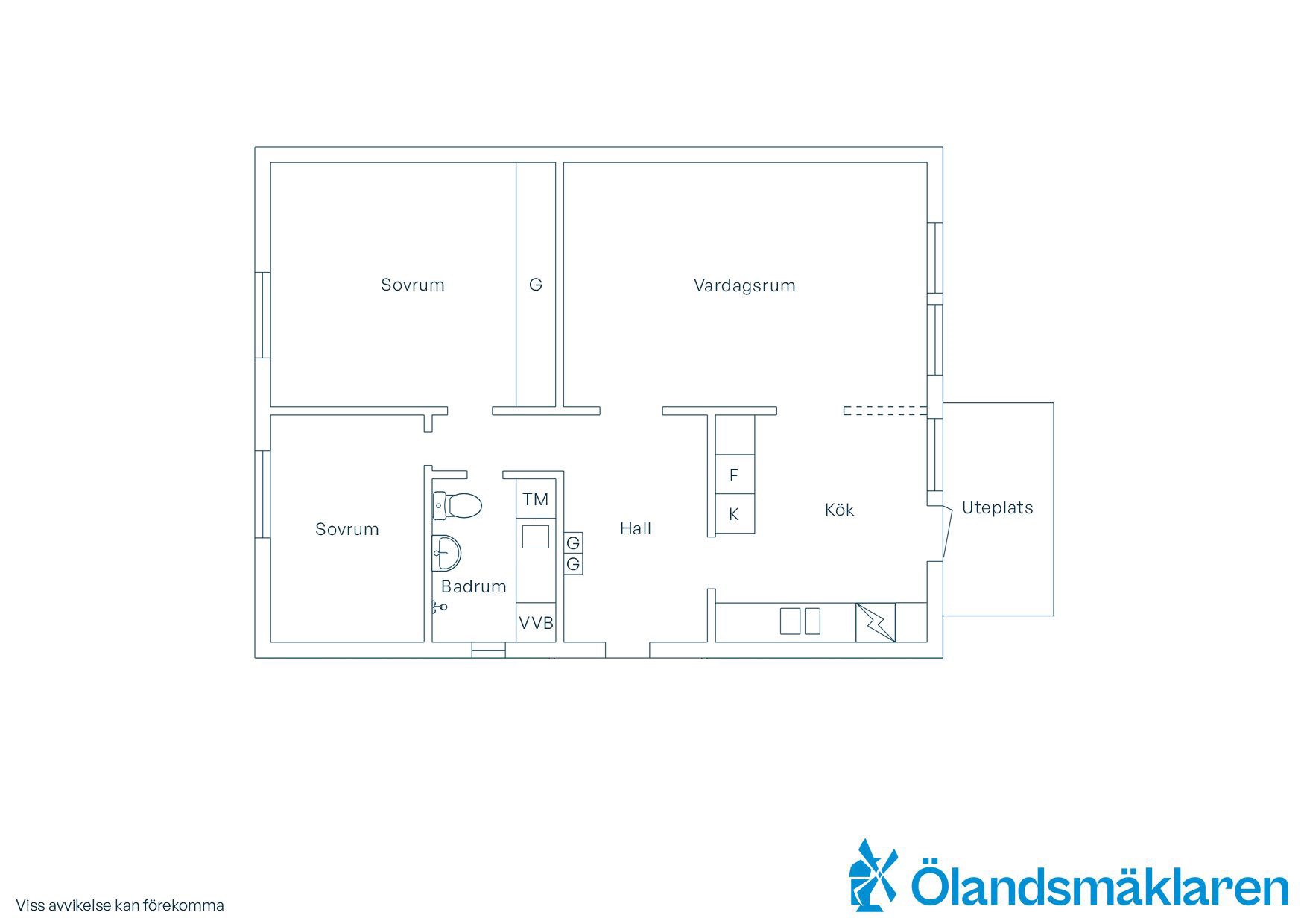 Invändigt möts du av ett rymligt allrum som ligger öppet mot köket som är placerat i vinkel, en lösning som skapar en social och trivsam yta för både vardag och umgänge. Från köket når du uteplatsen där du kan njuta av lugnet i det trevliga bostadsområdet. Lägenheten rymmer även en hall, ett stort sovrum, ett mindre sovrum som passar utmärkt som gästrum eller kontor samt ett badrum.