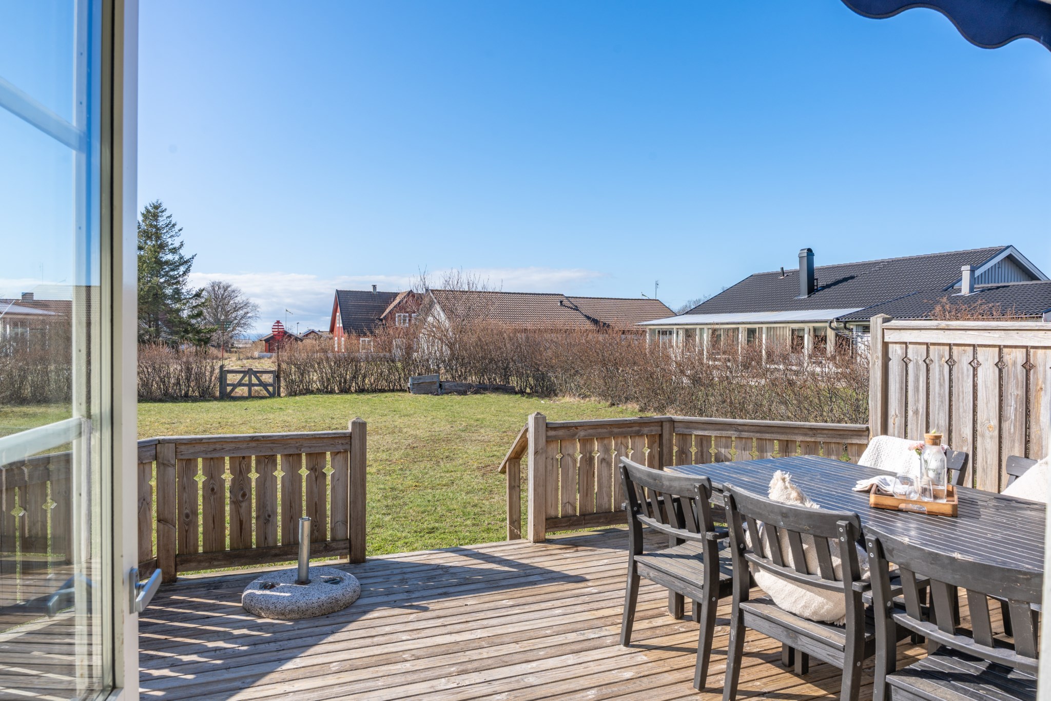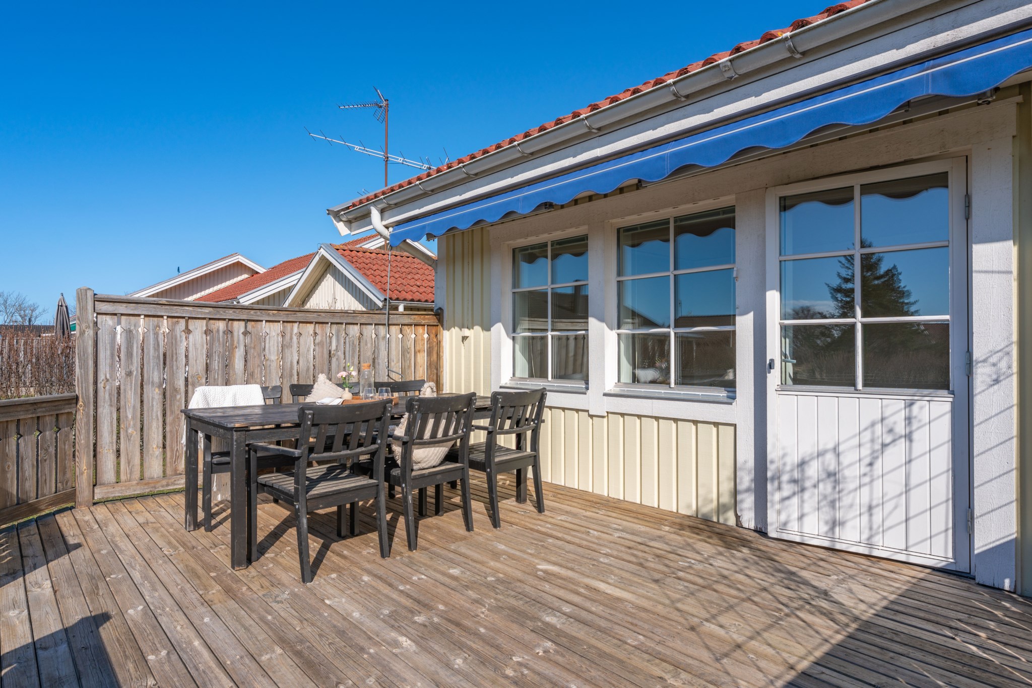 Bostaden erbjuder 63 välplanerade kvadratmeter där ljusa ytskikt och ett fint ljusinsläpp skapar en trivsam helhet. Från både huset och den soliga altanen har du en glimt av Kalmarsund – en detalj som verkligen förstärker känslan av läget. Tomten om 529 kvm ger utrymme för både avkoppling och möjligheter, oavsett om du drömmer om odling, lekytor eller att sätta din egen prägel på utemiljön. Till bostaden hör även ett praktiskt förråd i gemensam förrådslänga.